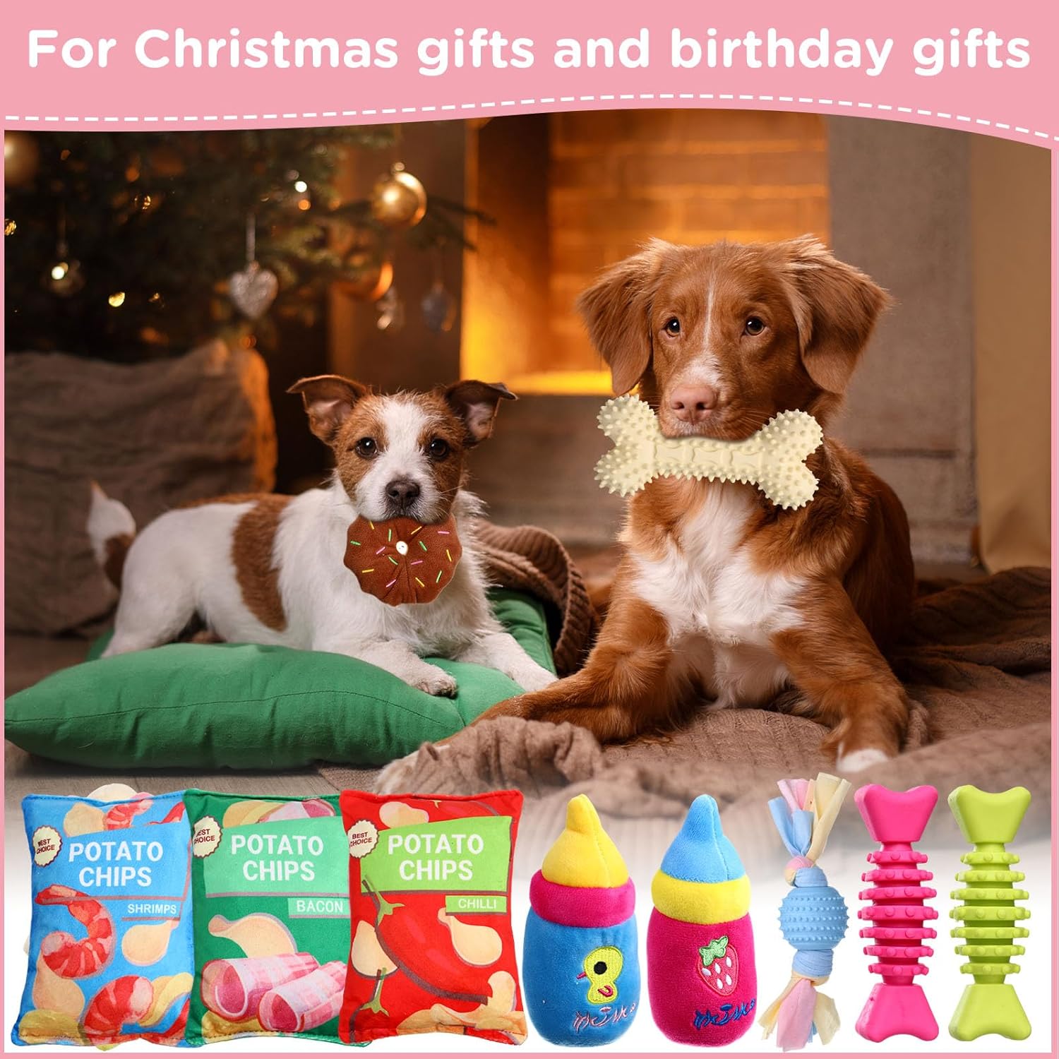 Features: This set of squeaky puppy plush toys provide lots of entertainment to enrich your dogs' leisure time and relieve boredom, helping to reduce their bad behaviors at home. Our puppy toys for teething are an ideal gift choice for your family, relatives, friend, colleagues, and neighbors who keep dogs at home, they will be delighted to receive such interesting and practical pet accessories. Specifications: Material: plush, cotton rope, TPR Color: as the picture shown Size: as the picture shown Quantity: 50 pieces Package includes: 4 Cotton knot dog rope toys 34 x Squeaky plush toys 12 x TPR dog chew toys Notes: Manual measurement, please allow slight errors on size. The color may exist a slight difference due to different screen displays. Pet owner supervision is required when use the product.