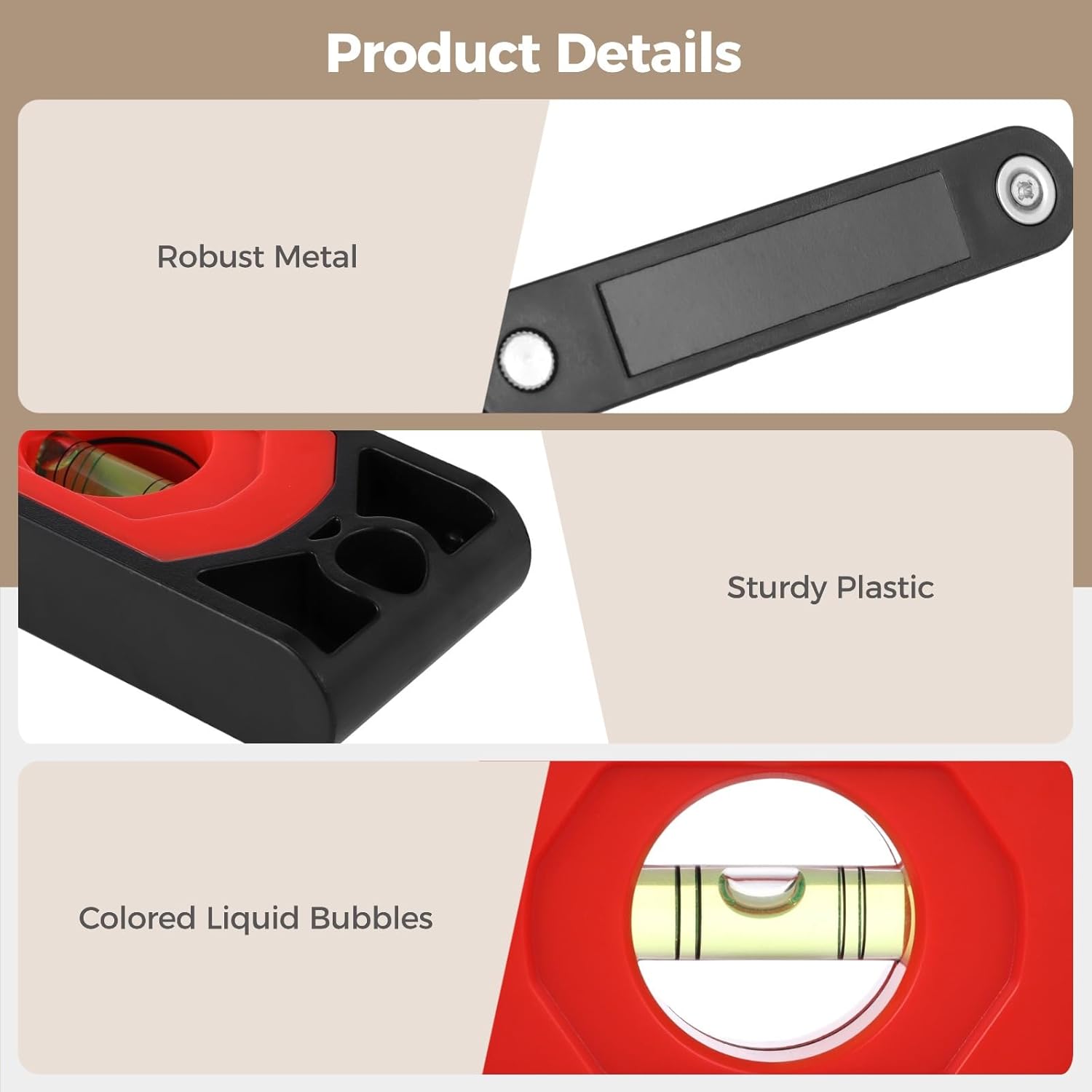 Color: Black & RedMaterial: Plastic,MetalSize: Folded: 5.3 x 2 x 4.7 in / 135 x 50 x 120 mm,Unfolded: 28.3 x 2 in / 720 x 50 mm,Each Section: 4.7 in / 120 mmPackage Includes: 1 x Multi-Functional Folding LevelNote:- Please refer to the measurement. Tiny measuring error is allowable in normal range.- There might be a little color difference due to the monitor, camera or other factors, please refer to the physical item.