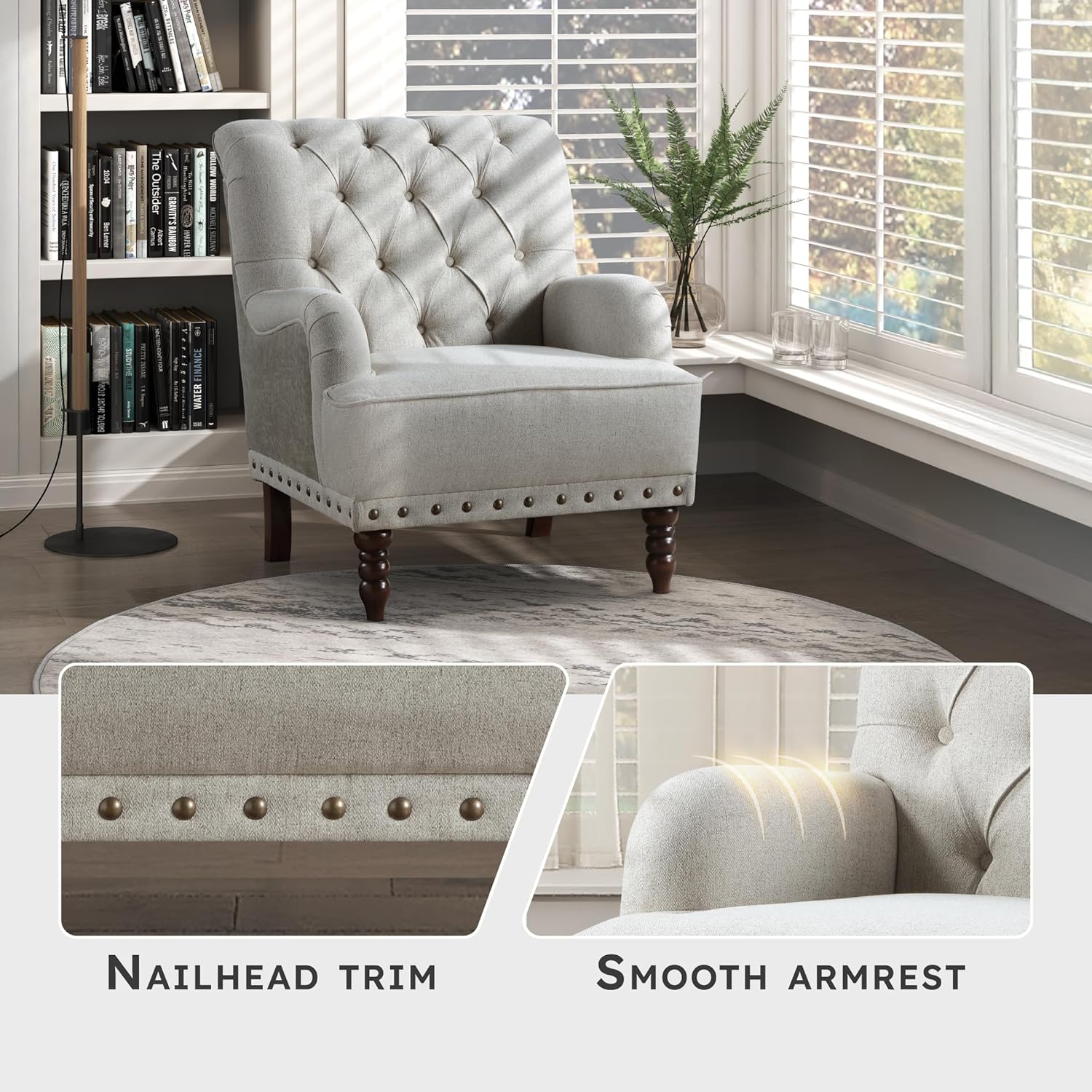 | Item Type Name | Comfy Textured Upholstered Armchair with Button-Tufted Backrest and Nailhead Trim for Living Room/Bedroom/Reading Room/Office |