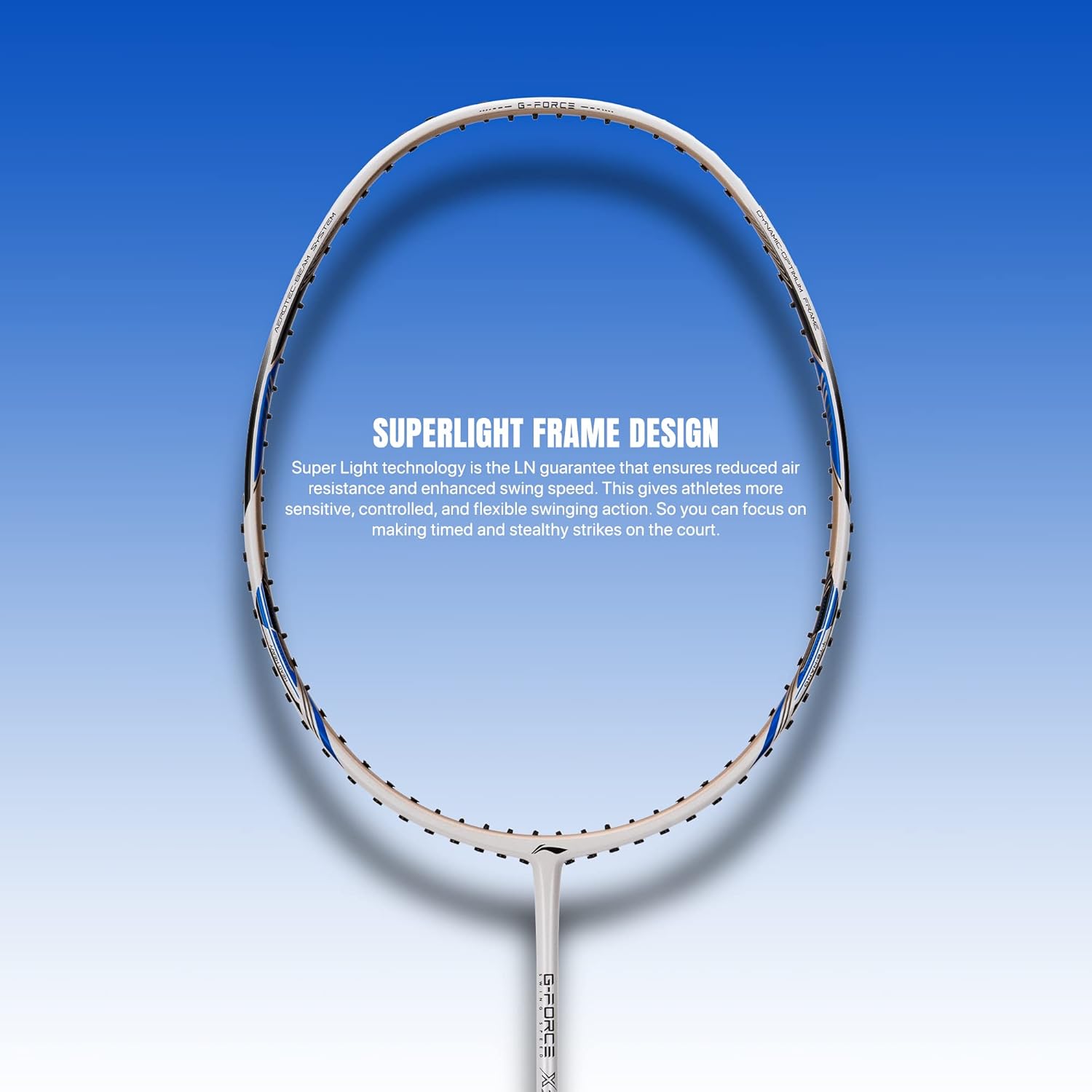Built with a powerful smashing shaft that delivers your offence attacks with mighty force. G-force X5 racket is made with a reinforcing technology that uses multi-layered carbon fibre to boost frame strength and enhance the intensity of your shots. The racket head has a dynamic optimum frame shape with an enlarged sweet spot without sacrificing durability.