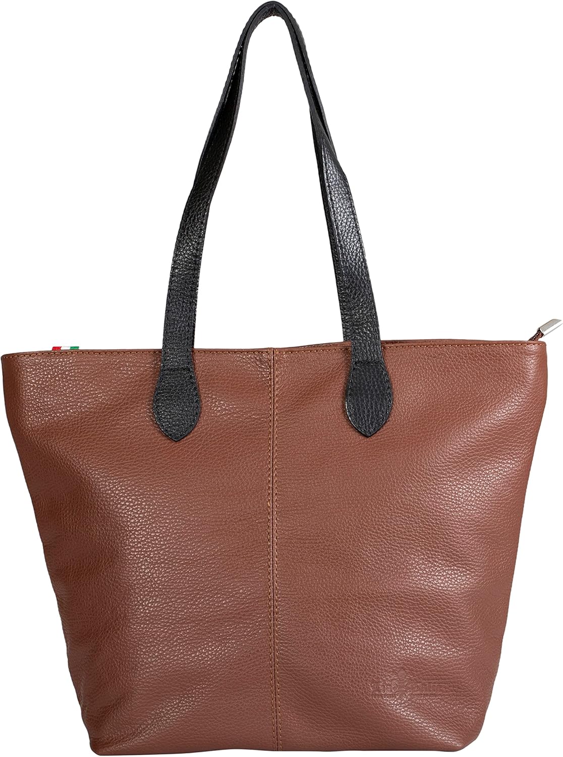 Designer inspired Medium Size Real Italian Leather shoulder top handle tote.The bag is simple plain and great for everyday use with a top zip opening.