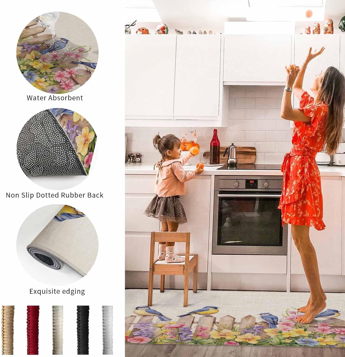 Material:HIGH QUALITY MATERIAL:Non-woven fabric top backed with a rubber Non-slip backing.Size:2Pcs: 16x24in mat +16x47in mat.2Pcs: 20x32in mat +20x47in mat.2Pcs: 20x32in mat +20x63in mat.2Pcs: 24x35in mat +24x71in mat.2Pcs: 20x24in mat +20x48in mat2Pcs: 18x30in mat +18x48in mat2Pcs: 18x30in mat +18x60in matDesign:Very durable, washing does not fade, no smell, no hair, no pilling.Nonskid, dry wet feet, grab dirt and dust, absorbent and dustproof, fit for kitchen, bathroom and living room, ect.Funny and Unique Design will add more fashion and difference to your home.Note:1.Due to different measurement methods,it is reasonable for 2-3cm tolerance.2.The real product might be a little different from the website photo due to color display of different monitors.