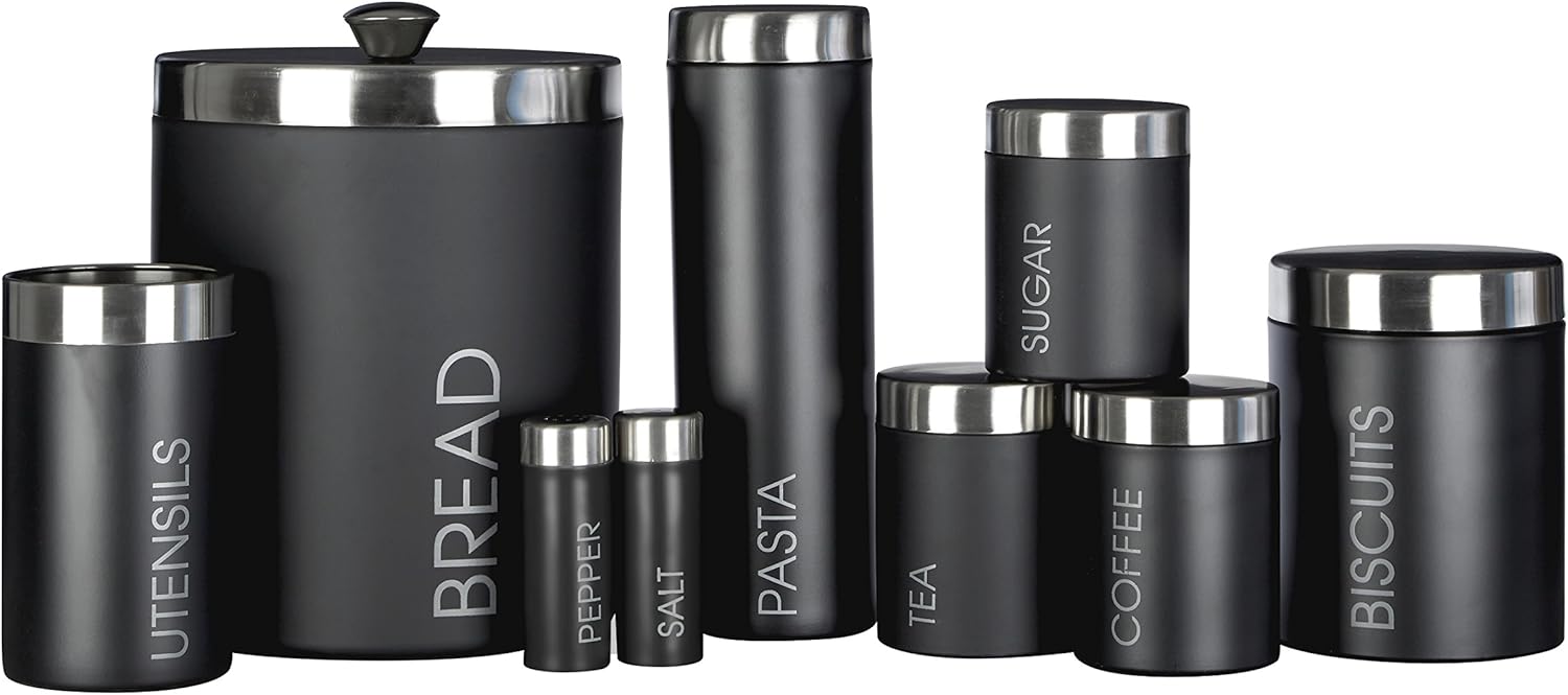 Le couvercle en acier inoxydable satiné de cette boîte à pâtes présente de délicats motifs de brosse sur sa surface réfléchissante. Avec sa forme haute et cylindrique, cette boîte permet aux pâtes séchées de rester droites et intactes. Sa finition en émail noir le rend résistant aux rayures et lui permet de conserver sa couleur dans le temps. Les lettres de couleur argentée et le couvercle en acier durable permettent d'identifier facilement le contenu en coup d'œil. Associez-le avec le porte-ustensiles Liberty. Avec un portefeuille de produits étendu qui couvre les ustensiles de cuisine, les accessoires de table et de salle de bain, ainsi que l'ameublement, les accessoires décoratifs, l'éclairage et le mobilier, Premier a pour objectif de fournir une solution complète aux besoins des détaillants d'articles ménagers en proposant une collection complète de produits assortis dans des emballages attrayants. Premier Housewares est fière de proposer l'une des gammes d'articles ménagers les plus complètes du secteur et veille à ce que, à mesure que sa gamme se développe, l'accent soit toujours mis sur un design classique et contemporain à un prix avantageux. La gamme Premier Housewares est constamment revue et développée par une équipe d'acheteurs dédiée à chaque domaine de produit spécifique