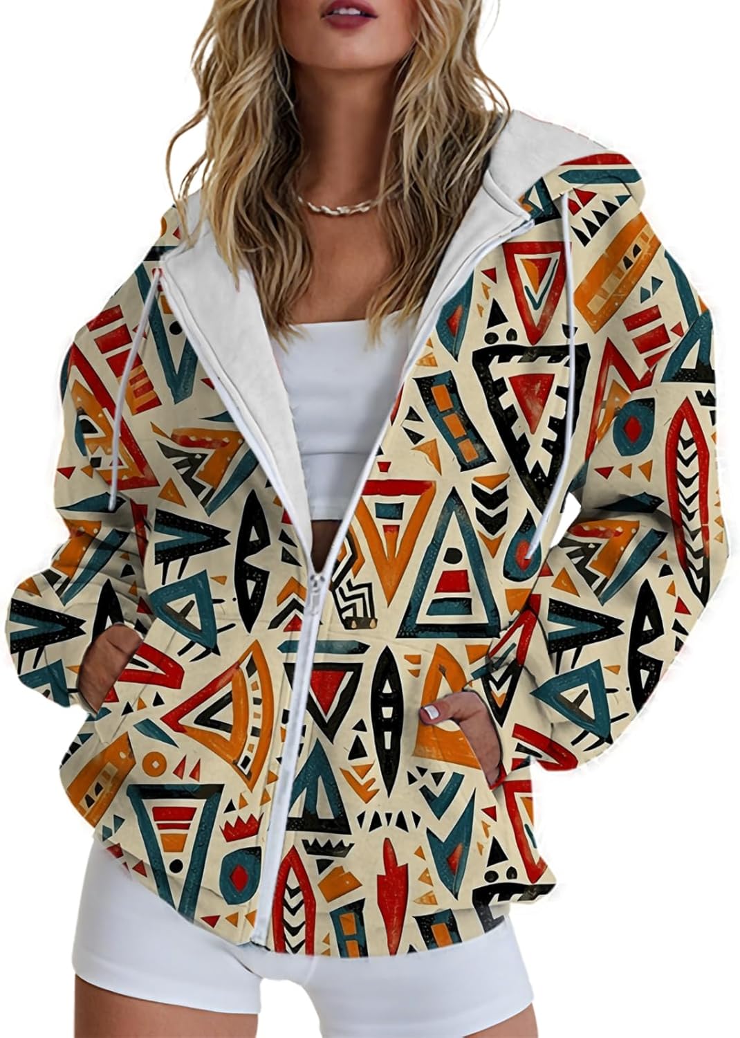 Lightweight Hoodies Womens Casual Comfy Zipper Long Sleeve Drawstring Spring Sweatshirt Elegent Boho Street Clothes