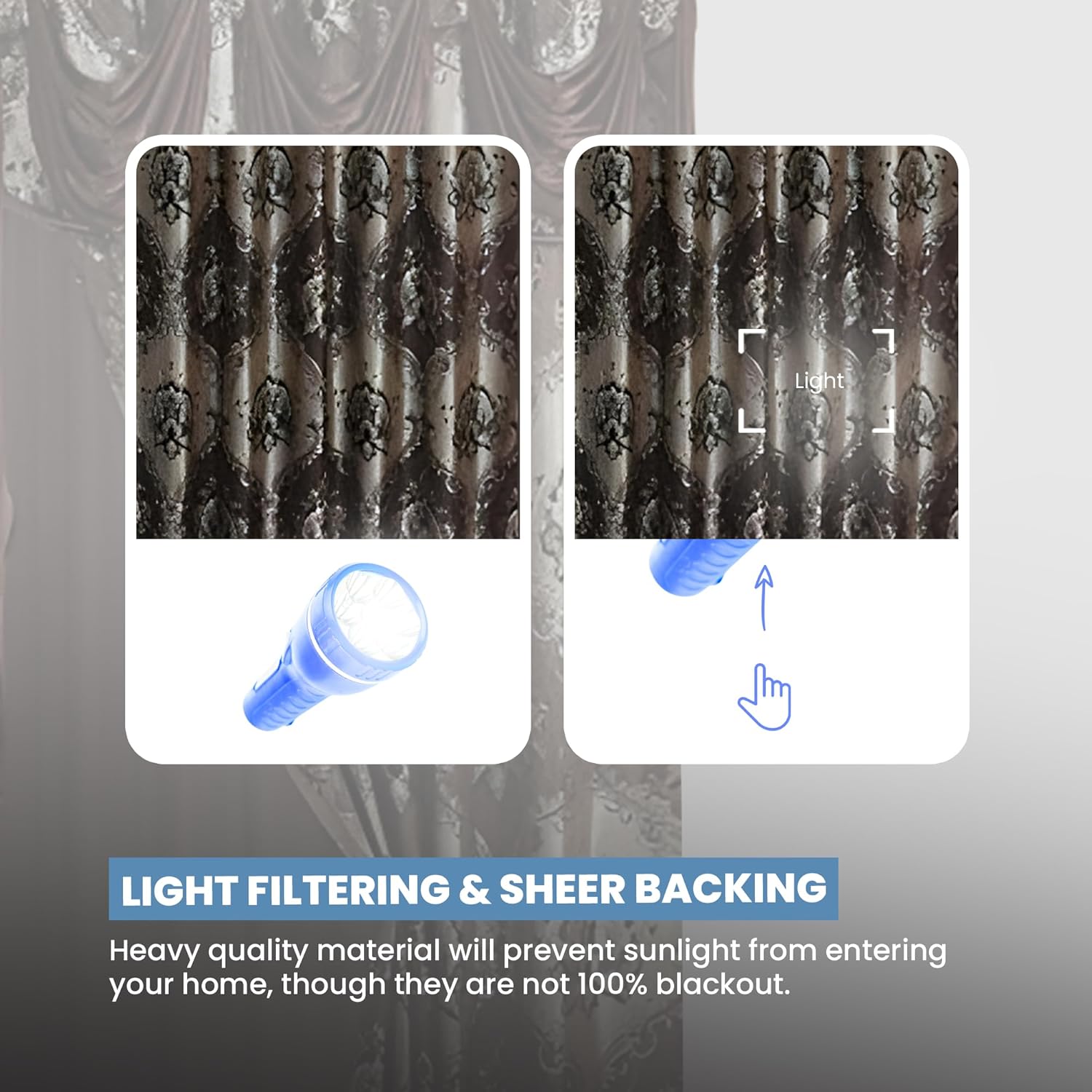 LinenTopia Classical Jacquard Window Drape Set (2 Panels), Includes Valance and Sheer Backing, Traditional Victorian Style Floral Curtain Drape Panels for Living Rooms, (Elsa, 63, Chocolate|Coffee)