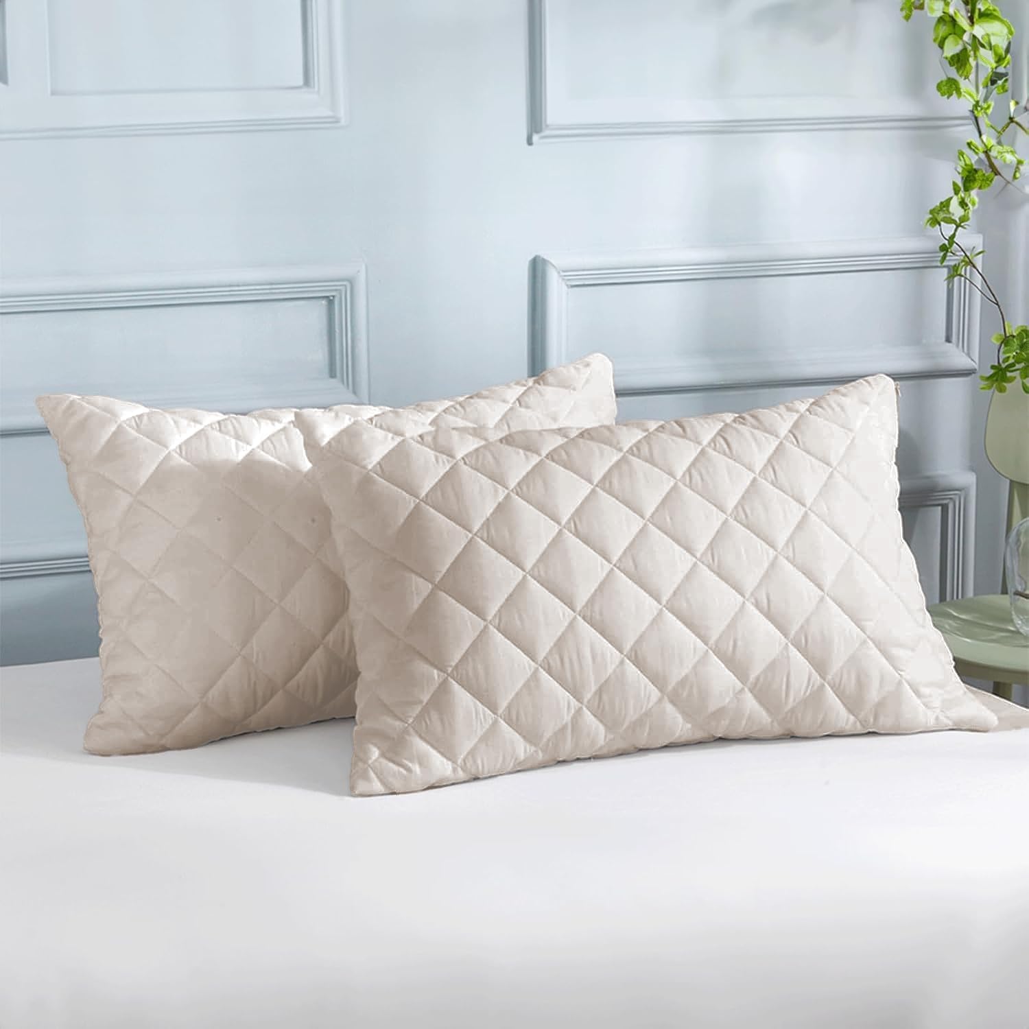 LINENWALAS Viscose Derived From Bamboo Quilted Pillowcases - Set of 2 , Ultra-Soft, Cooling & Breathable, Zipper Closure Pillowcase Set