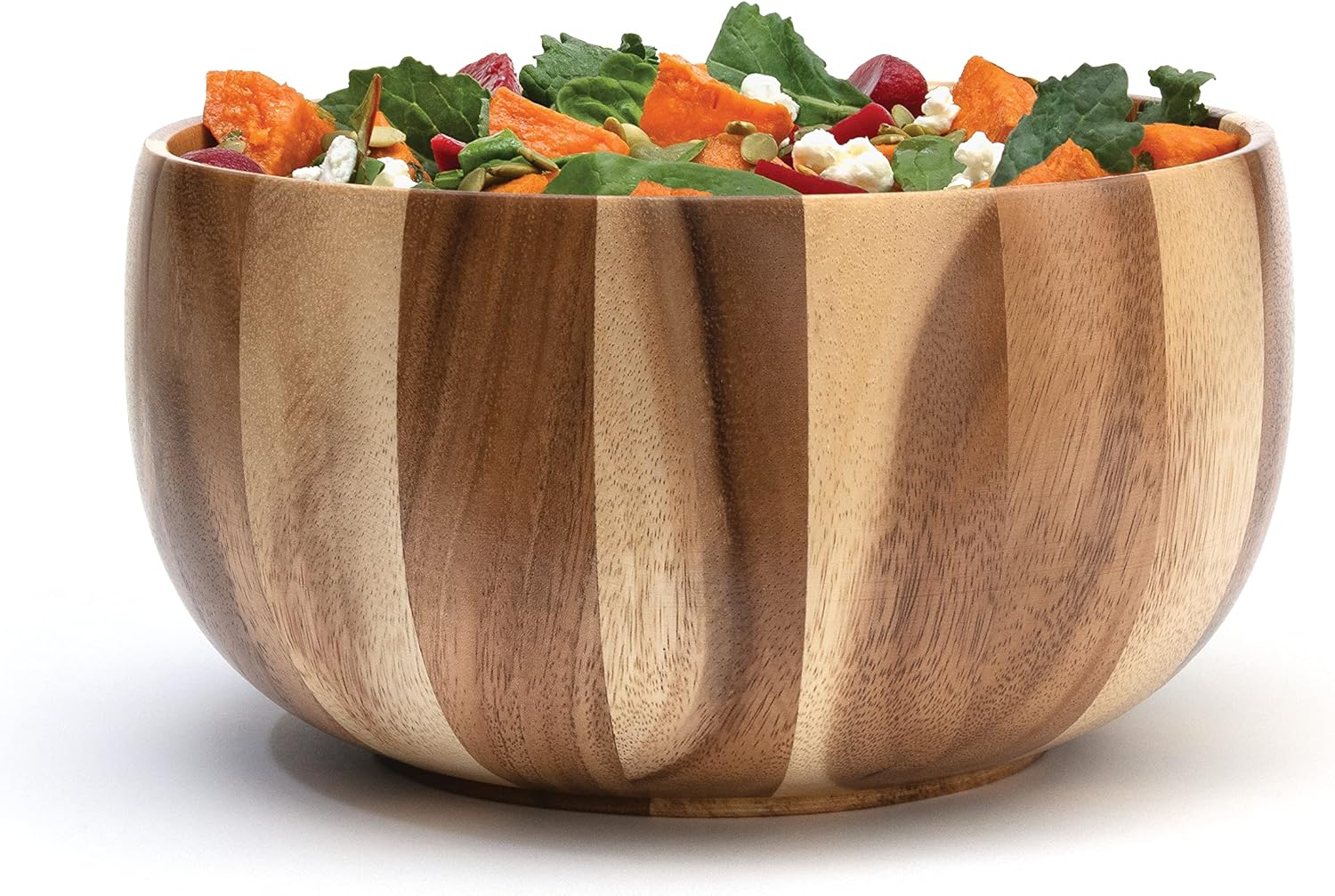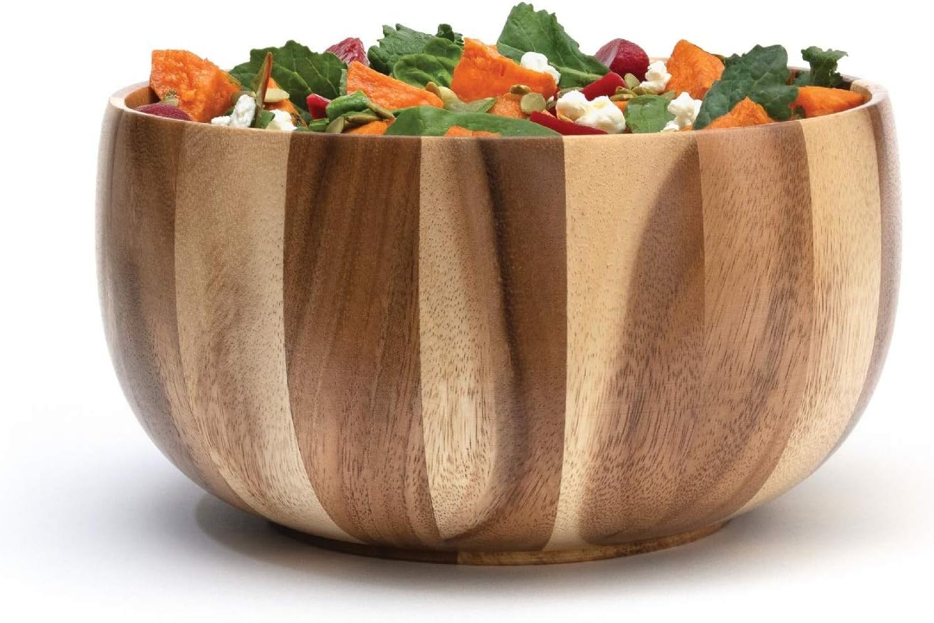 Our Sunburst Salad-for-One and Salad-for-Two bowls are just what you need for tossing together a healthy meal. The light, natural coloration in the wood coordinates beautifully with contemporary decor trends such as California Casual and Modern Farmhouse. Perfect for serving everything from individual salads to movie-night popcorn, these beautiful wooden bowls are crafted from durable and attractive acacia wood. The timeless look of wooden serveware coordinates with nearly every decor style. Great for making a statement when hosting, or just for serving a weeknight dinner beautifully. Fun and festive, you'll find our acacia wood serveware bowls at the center of your table for years to come. Hand wash with a mild soap and cool water. Do not soak. Dry thoroughly. Do not put in the dishwasher, microwave or refrigerator. Extreme changes in temperature will cause the material to crack over time. Occasional use of mineral oil on the used surface will help maintain its appearance.