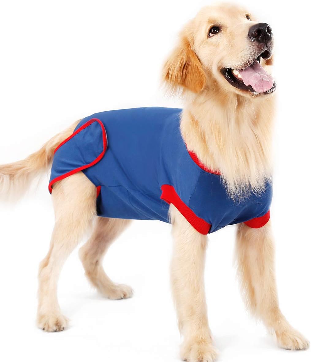 Description: 1. The postoperative clothes are made of pure cotton fabric, which is soft and elastic with strong enveloping quality. The dog seems to be in the arms of its owner, comforting the injured dog psychologically and playinstabilizing role after the operation. 2. Large coverage, which can prevent the dog from actively licking and biting; 3. The collar and hand parts have been added with the rib border design and double cotton cloth design on the abdomen, so as to take more care of the injured dog. 4. Use nylon fastener to fix the position on the back without affecting the dog's sleep; 5. The storage design has been added. When the dog defecates or urinates daily, the owner can use the nylon button on the chest to collect the materials for the rear buttocks, which will not affect the daily walking of the dog or the dog's defecation. 6. Wrap traditional bandages around wounds. The coarse cloth can cause bleeding after surgery. This soft and skin-friendly operating suite coverlarge area, and the dog is stable after surgery. Size Information: XS--- Neck Girth: 10.24inch; Chest Girth: 14.17inch; Back Length: 10.63inch-13.39inch; S--- Neck Girth: 12.6inch; Chest Girth: 17.32inch; Back Length: 12.6inch-14.57inch; M--- Neck Girth: 14.17inch; Chest Girth: 20.47inch; Back Length: 14.96inch-17.72inch; L--- Neck Girth: 16.54inch; Chest Girth: 25.2inch; Back Length: 18.11inch-21.65inch; XL--- Neck Girth: 18.11inch; Chest Girth: 29.13inch; Back Length: 22.05inch-26.38inch; 2XL--- Neck Girth: 18.9inch; Chest Girth: 33.07inch; Back Length: 26.77nch-30.31inch Package includespc pet postoperative protective suit