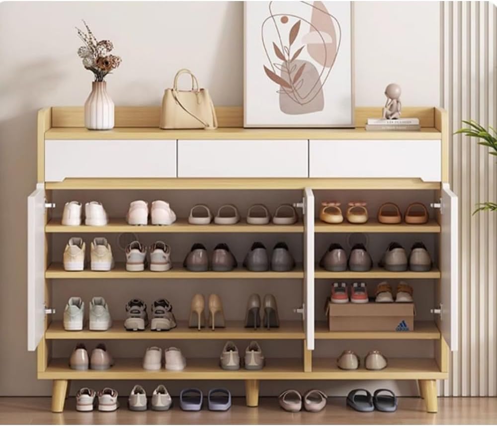 ✦✦Specifications ✦Information Category: Shoe Storage Cabinet Usage: Living Room, Bedroom, Entryway, Hotel, Hallway...... Style: Modern / Creative / Simple ✦Dimensions Shoe Organizer: 39.4"L x 12.6"W x 39.4"H ✦What's Included Number of Items Included: 1 Piece Assembly Tool: Yes Instruction Manual: Yes ✦Material and Colour Material: Wood(Pine) Color: Brown/ White ✦Features Outdoor Use: No Drawers Included: Drawers Included Number of Drawers: 3 Closed Back: Closed Back Adjustable Shelves: Adjustable Shelves Included: Shelves Included Installation Type: Free Standing Welcome to visit our store and buy our special designed and good quality products. If you have any questions about our products and service, please feel free to contact and we will always be here to assist.