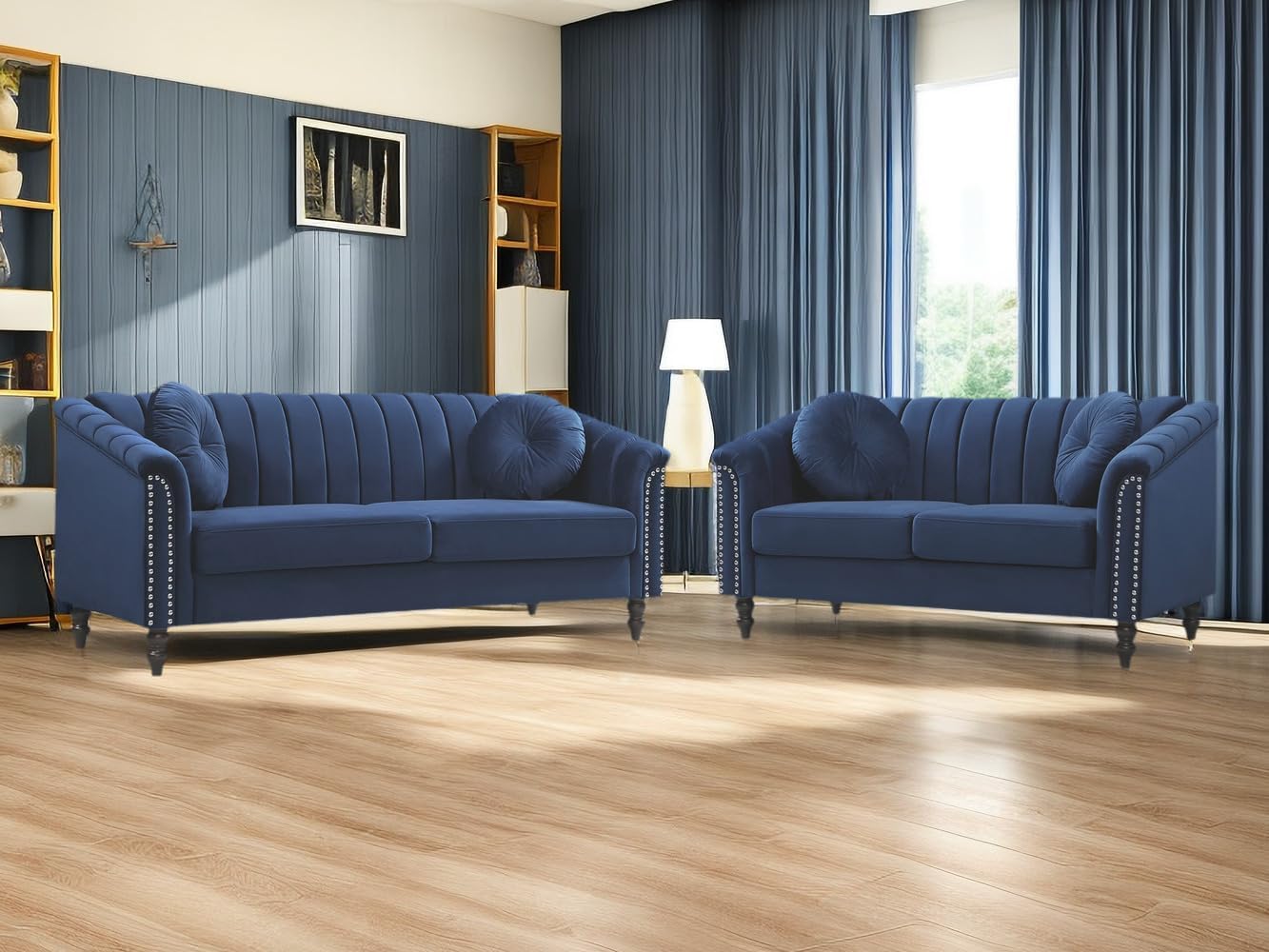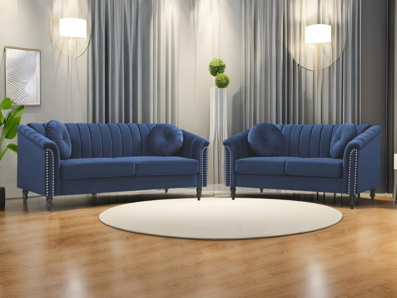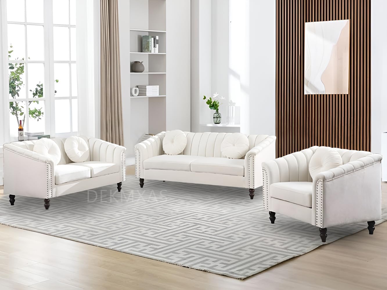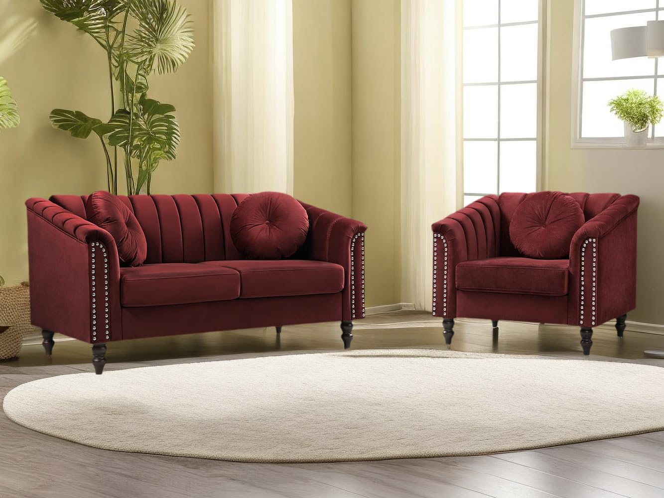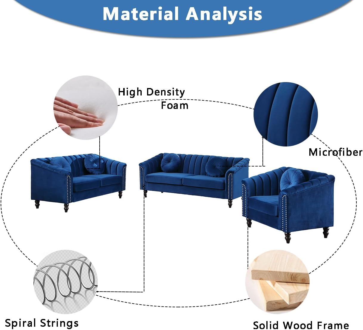 Dekmxas Living Room Furniture Sets, Sectional Couches, Chesterfield Sofa Chair, Contemporary Upholstered Flannel Fabric Loveseat Couch Sets with Toss Pillows for Living Room, Bedroom, Office