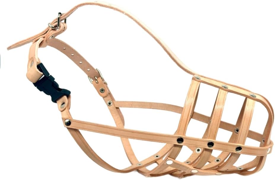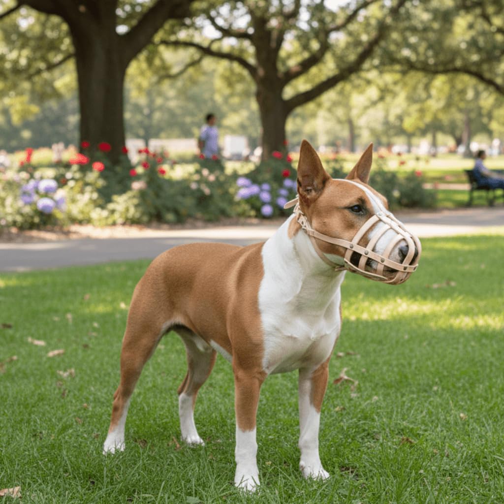 Ensure the safety of your dog and those around you without compromising on comfort. The L&J Pets UK Light Genuine Leather Dog Muzzle is expertly crafted specifically for the unique facial structure of English Bull Terriers, Amstaffs, Staffordshire Bull Terriers, and other breeds with similar broad snouts. Unlike heavy wire cages or restricting nylon, our muzzle is made from high-quality, lightweight genuine leather that softens with wear, preventing chafing and irritation on your dog’s sensitive nose. The open basket design offers superior ventilation, allowing your dog to pant freely - essential for regulating body temperature during walks, training sessions, or vet visits. Featuring secure, adjustable leather straps and durable metal rivets, this muzzle provides a safe solution to prevent biting, chewing, and scavenging while ensuring your pet remains happy and stress-free.