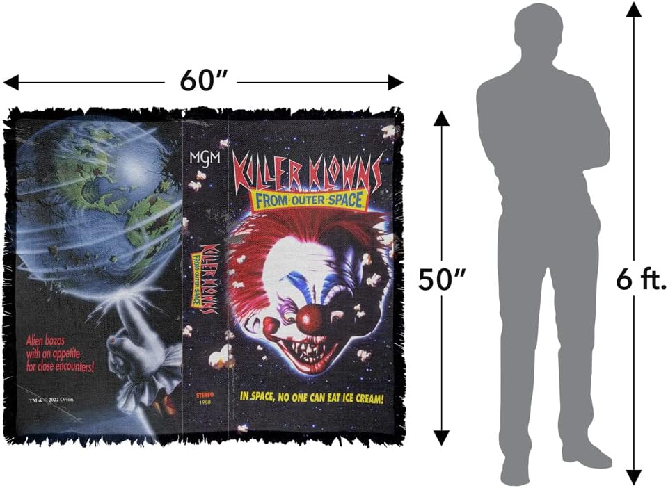 Killer Klowns From Outer Space - Clown Blanket, 50"x60" VHS Woven Tapestry Cotton Blend Fringed Throw Blanket