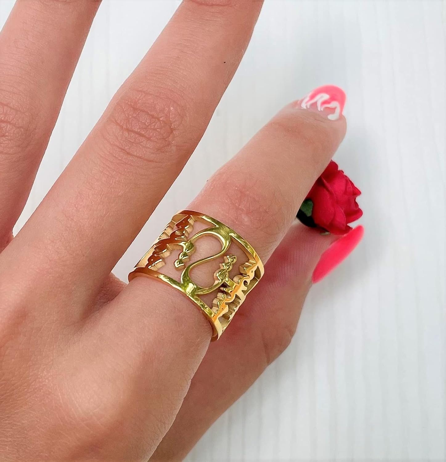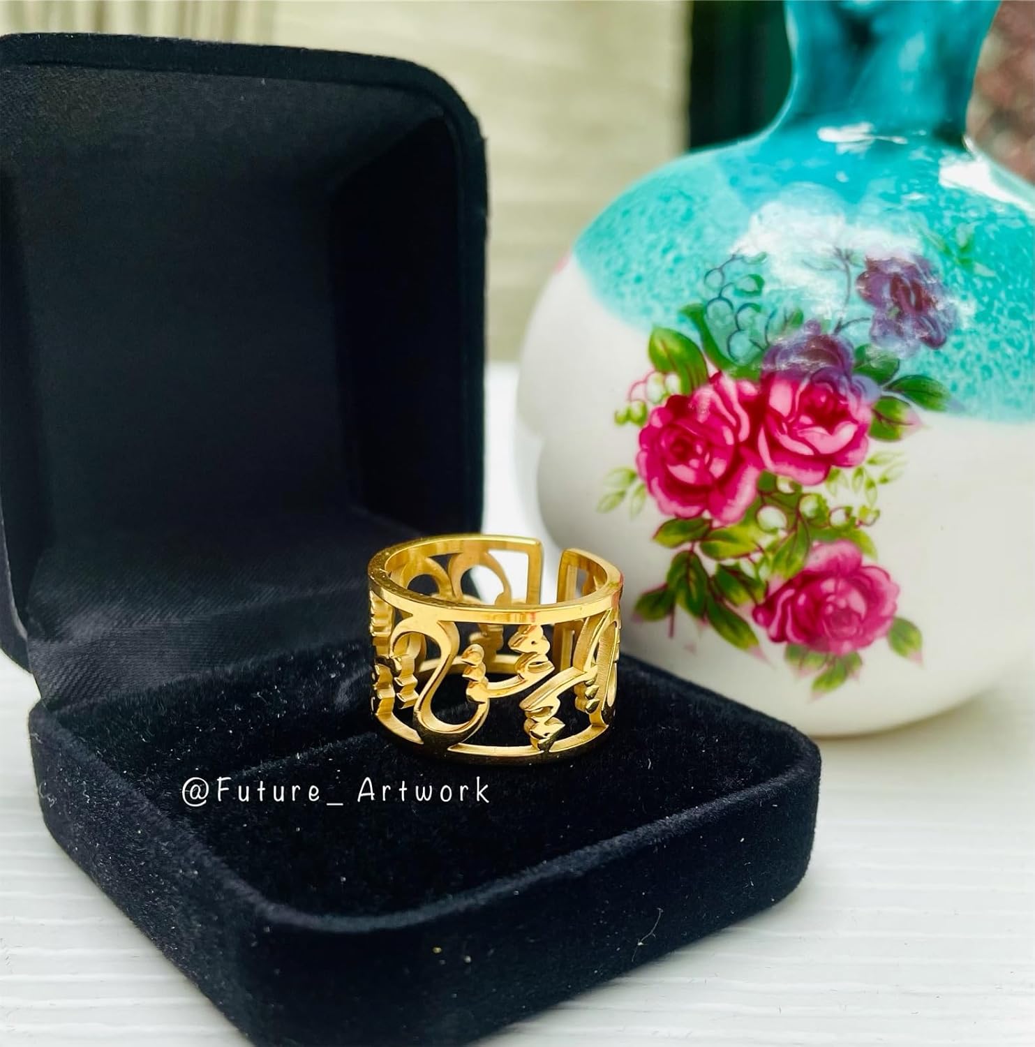 Love Ring, Gold Plated Persian Ring with Love Letter, Calligraphy Jewelry, Special Elegant and Stylish Gift for Her