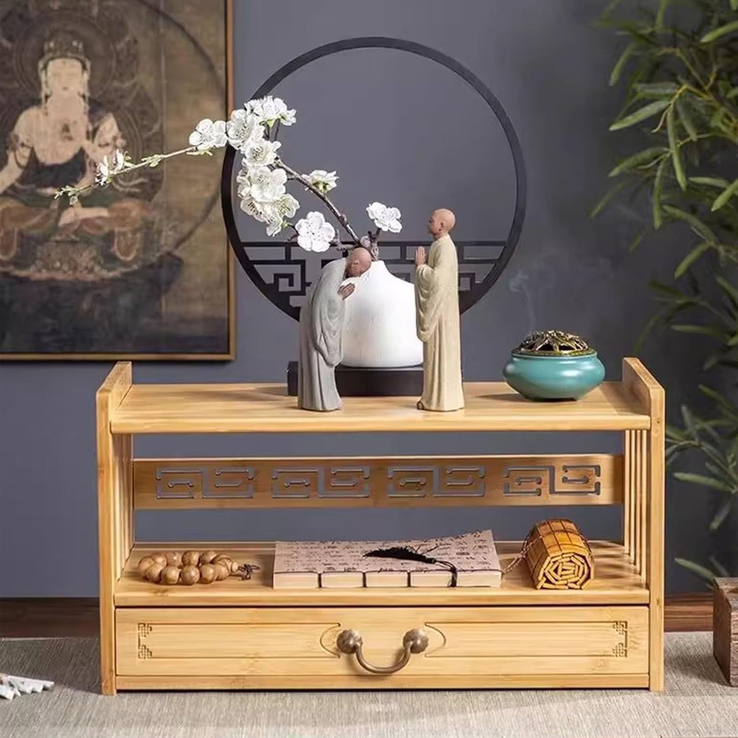 GUQASDV proudly introduces the Personal Shrine Altar Table. This elegantly designed altar is perfect for a variety of purposes, such as Day of the Dead celebrations, meditation, and prayer. Adaptable to both Buddhist and Chinese traditions, this versatile table is an ideal addition to your spiritual space.Specifications:Name: Personal Shrine Altar Table/Meditation Table/Altar Cabinet/Buddha Altar/Altar Cabinet/Buddhist Prayer Table/Puja TableMaterial: Bamboo and Composite PanelSize Options:42cm/16.5in , 52cm/20.4in , 69cm/27.1inPackage Includes:1 × Personal Shrine Altar TableNotes:1. Please confirm dimensions before purchasing. Manual measurements may vary by 0-3 cm.2. Product photos only show the altar table and do not include accessories.3. Due to differences in monitor displays, slight color variations may occur; please understand.4. Dimensions provided are for reference only; actual product dimensions may vary slightly. Thank you for your understanding.
