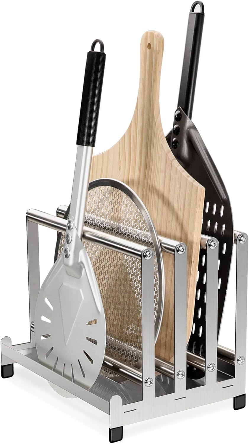 LRUI Pizza Peel Rack, Steel 4 Available Slots for Pizza Peel Organizing and Saving, Pizza Holder Rack with Non-Slip Feet.