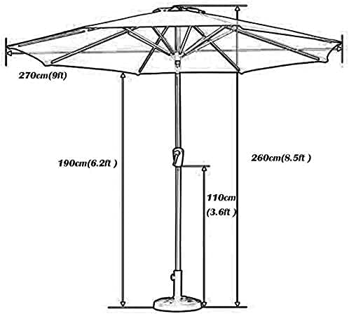 This Parasol is perfect for blocking out suns rays on those hotter days. It is easy to open and close and also has a tilt mechanism allows you to adjust angle of canopy.> > It is lightweight and compact for easy storage .> patio umbrella is an ideal choice to enjoy shade in sunny days, can tilt for better protection.> Specification:> - Material: Metal, Polyester fabric> - Colour: Green> - Canopy Shape: Round> - Umbrella Diameter: 270cm (9ft)> - Overall Height: 260cm (8.5ft )> - Weight: 8kg> - Assembly Required: Yes> - Commercial / Residential: Both> Features:> - Instant relief from hot sun> - A dream outdoor getaway> - It can be easily and swiftly operated with a crank mechanism.> - Commendable decorations add to your patio, backyard, garden, etc.> Package Includes:> 1 × Patio Umbrellas > Warm Tips:> 1. Close umbrella during windy days for longer use.> 2. We try our best to make pictures close to real, but lighting, contrast and color display may cause color difference.> 3. , .{/p}
