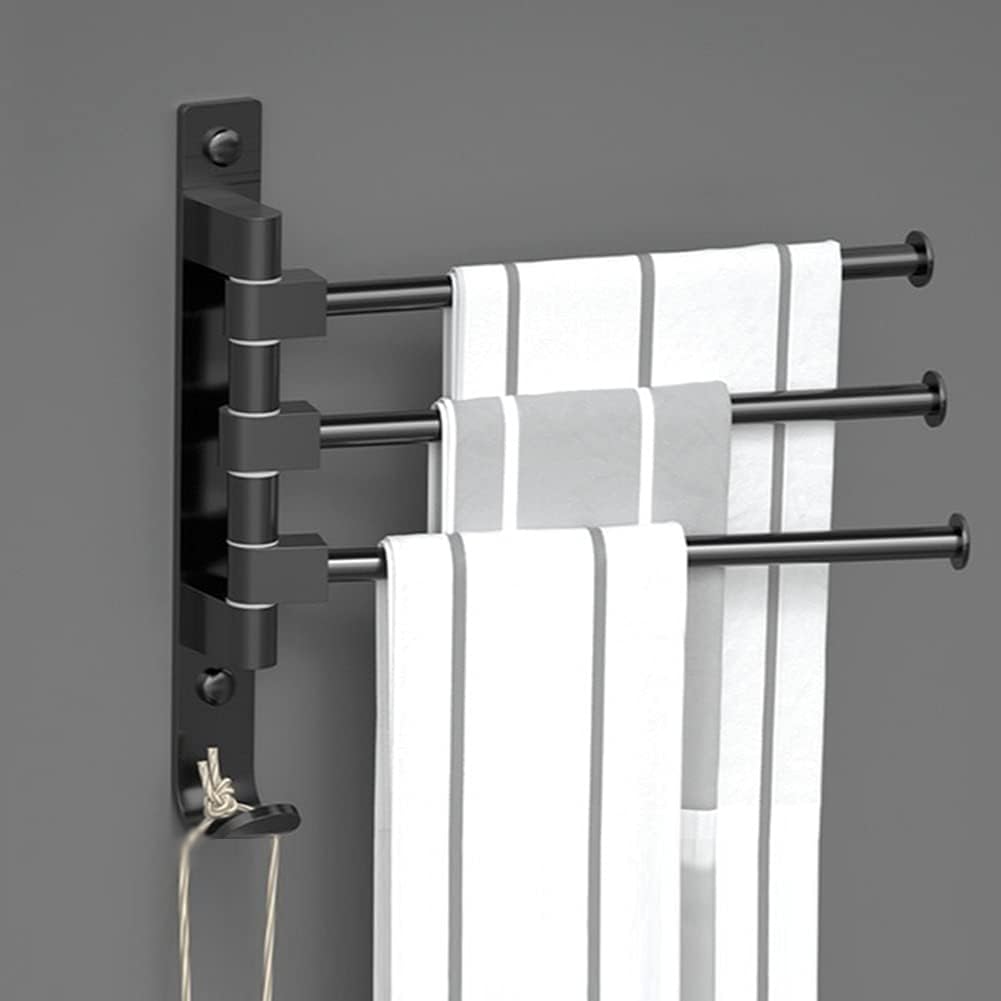 This kitchen towel rail provides assigned storage space for towels and dishcloths, keeping the worktops neat and saving valuable space.>Product Features:>Heavy Duty: The towel bar is very sturdy and well-constructed for longer daily use. Matte Black, stylish style, ideal for hotel and household use.>Additional Hook: Additional hook on its bottom, perfect for hanging your heavy clothes.>180 Degree Rotation: Up to 180 degrees, easy to adjust the placement of arms for drying of your items.>Space Saving: Allow you to utilize the dead space in your bathroom, add more usable space to organize your towel, tie, tanks tops, headbands, coat and more.>>Packages: >1* Towel Rack>>Notes:>1. Please allow 0-1 inch error due to manual measurement. Thanks for your understanding.>2. Monitors are not calibrated same, item color displayed in photos may be showing slightly different from real object.>Bathroom towel shelf allows for the largest use of smaller spaces for storing more towels. Keep the towels clean, offering large storing space for your towels.{/p}