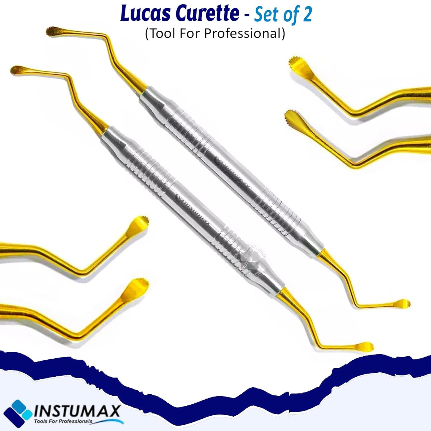 2Pcs Lucas Curettes – Dental Surgical Instruments with Serrated Color Ring Handle | Lightweight Hollow Design 🦷 Precision Lucas Curettes for Periodontal & Implant ProceduresEngineered for periodontal specialists and implant surgeons, this 2-piece Lucas curette set features an ergonomic serrated color-ring handle and hollow-shank design. Crafted from medical-grade stainless steel, these instruments deliver superior tactile feedback, effortless scaling, and long-lasting performance.✔ Serrated Color Ring Handle – Non-slip grip with color coding for quick instrument identification✔ Lightweight Hollow Design – Reduces hand fatigue and maximizes tactile sensitivity during subgingival work✔ Precision Gouged Blades – Sharp, curved tips optimized for thorough debridement and root planing✔ Dual-Ended Versatility – Two working ends for anterior and posterior accessibility✔ Autoclavable & Corrosion-Resistant – Medical-grade finish holds edge integrity through repeated sterilization💼 USES & APPLICATIONS:✔ Subgingival Scaling – Effective removal of plaque and calculus below the gumline✔ Implant Maintenance – Gentle yet thorough debridement around implant fixtures✔ Periodontal Debridement – Precision curettage to promote healthy periodontal tissues✔ Root Planing – Smooth root surfaces for improved healing and reattachment📐 SPECIFICATIONS:Material: Medical-grade stainless steel with polished finishSet Contents: 2 Lucas curettes, each double-ended for anterior and posterior useHandle: Serrated color ring for instrument identification and slip resistanceDesign: Hollow shank to minimize weight and enhance tactile feedbackCare: Fully autoclavable; corrosion-resistant; retains edge sharpness🔎 OPTIMIZED KEYWORDS: Lucas curettes, serrated handle dental instruments, hollow curette design, implant maintenance tools, periodontal scaling curettes, root planing instruments, autoclavable dental curettes 🎯 IDEAL FOR:🏥 Dental Clinics🦷 Periodontists🎓 Dental Hygienists🦾 Implant Surgeons🛒 LUCAS CURETTE SET – LIGHTWEIGHT & ERGONOMIC EXCELLENCEOptimize periodontal and implant care with precision-engineered curettes designed for comfort, control, and lasting performance.📌 Lightweight | Ergonomic | Autoclavable | Color-Ring Handle