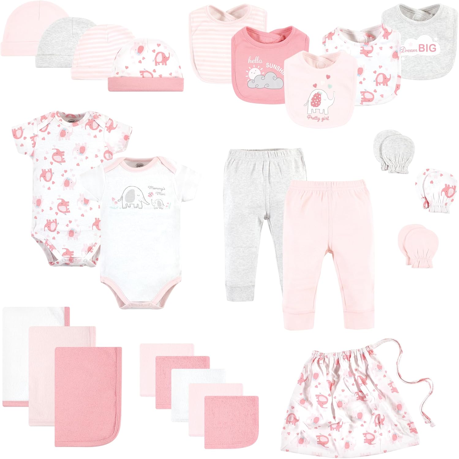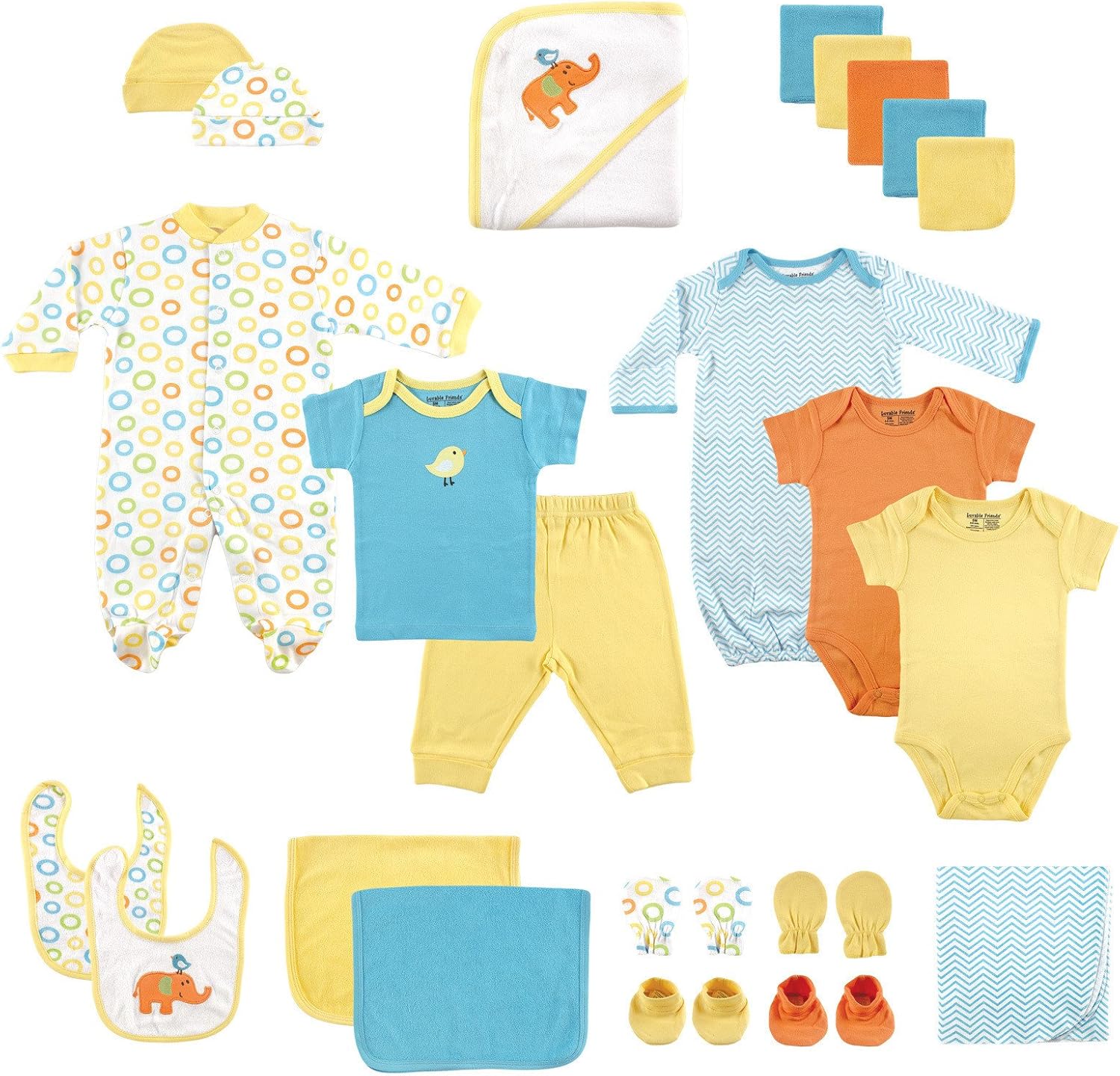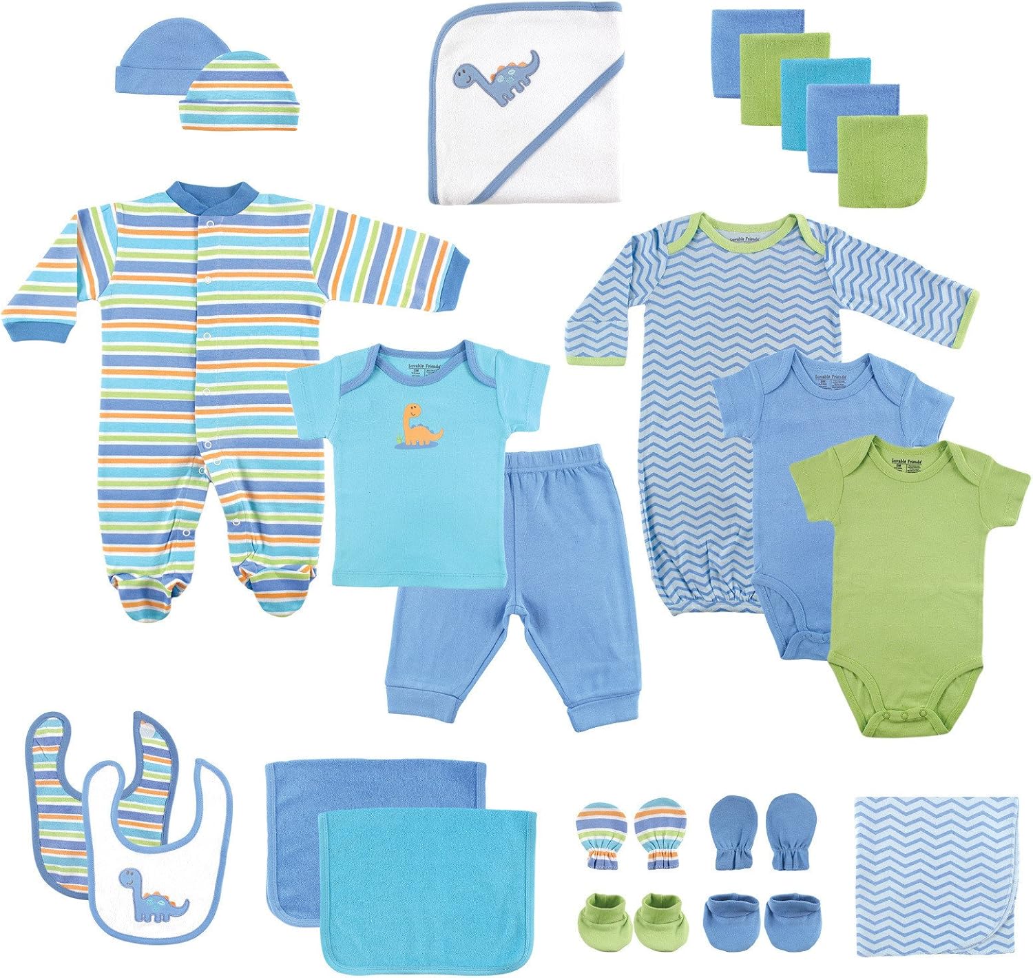 Luvable Friends 24-piece gift cubes feature all your baby essential needs in one easy to purchase baby package. All pieces in the gift cube are designed to coordinate together to make dressing your little one fun, convenient and easy. Our gift cubes make a great baby shower gift.
