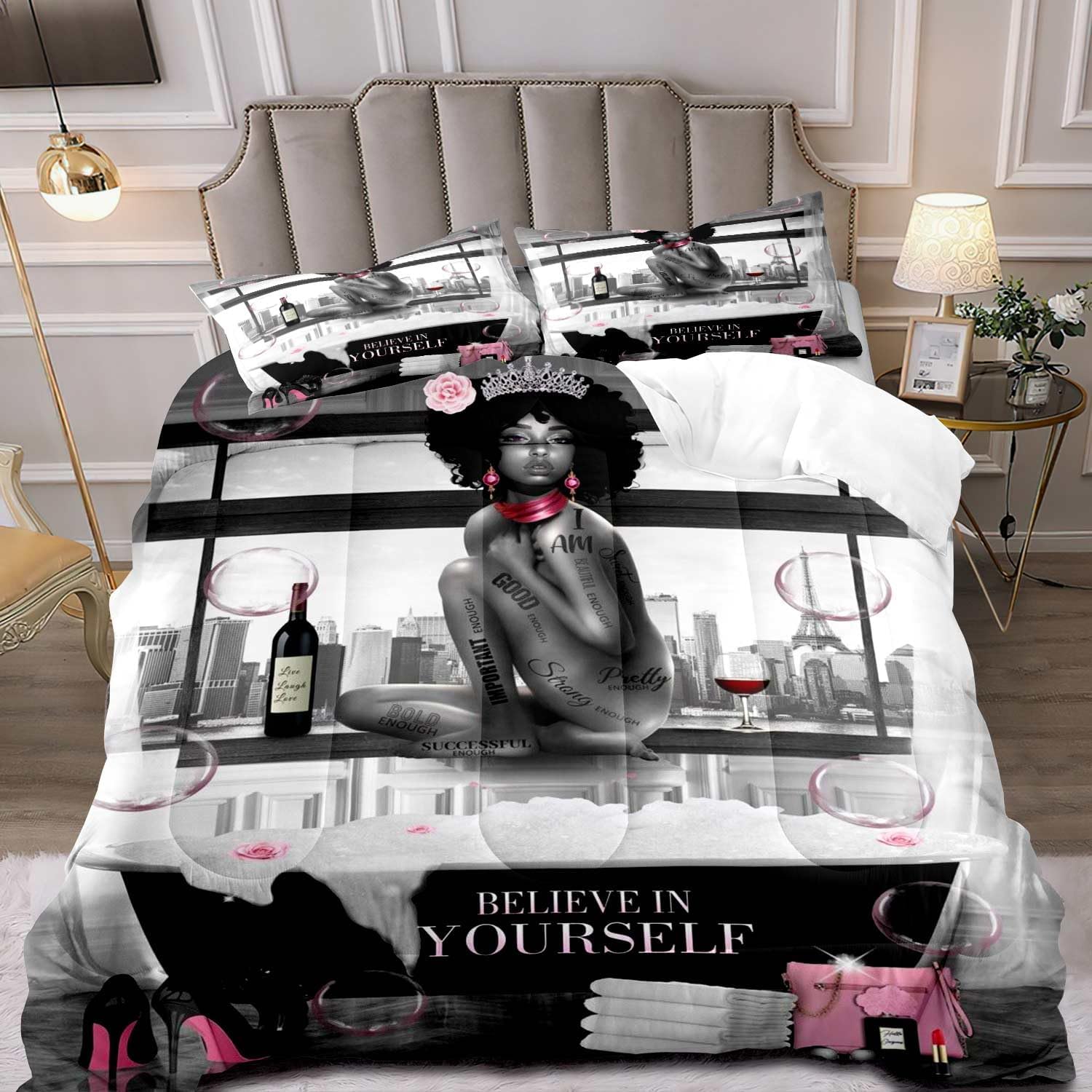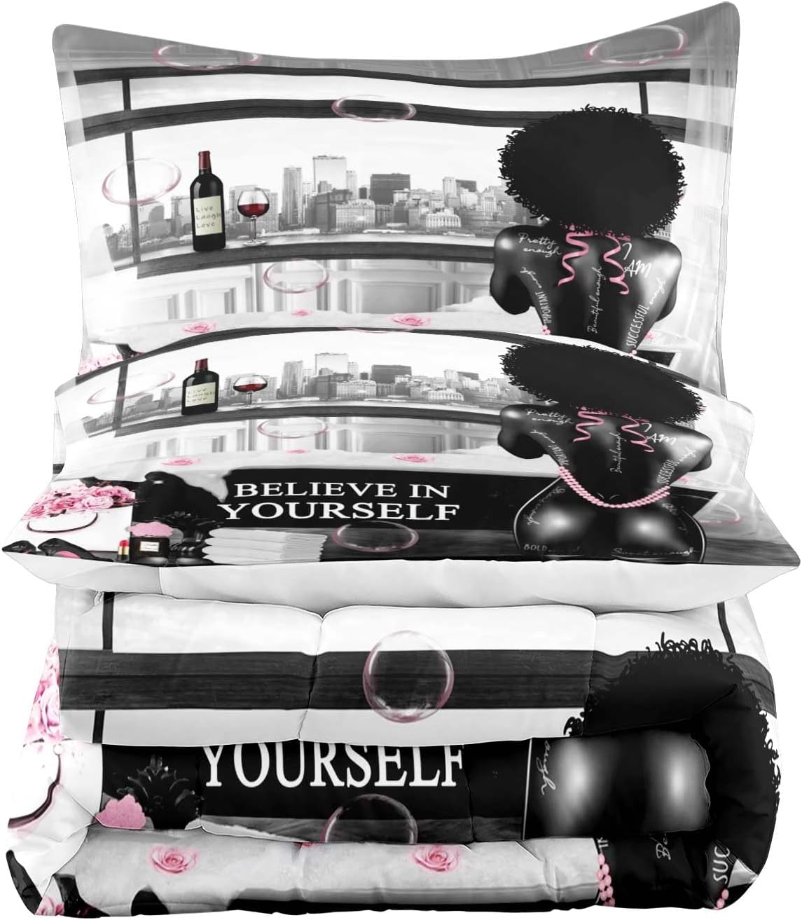 ♛ WHY CHOOSE "LUVIVIHOME"?✔️LUVIVIHOME is s a leading home textile manufacturer, specializing in the production of shower curtains, bath mats, comforter, duvet covers, sheets, pillow shams, blankets, etc.✔️We have our own factory and R & D team with more than 20 years of professional experience.✔️LUVIVIHOME comforter sets are handmade by skilled workmanship. We seek to bring you the ultimate daily comfort experience through every stitch and thread.♛ WHAT WILL YOU GET?✔️US-Twin: 2 Pieces1*Comforter: 68"x86"1*Pillowcase: 20"x30"✔️US-Full: 3 Pieces1*Comforter: 80"x90"2*Pillowcases: 20"x30" ✔️US-Queen: 3 Pieces1*Comforter: 90"x90"2*Pillowcases: 20"x30"✔️US-King: 3 Pieces1*Comforter: 90"x104"2*Pillowcases: 20"x36"♛ FEATURES✔️Hotel Quality✔️100% Microfiber✔️Ultra Soft✔️Skin-friendly✔️Breathable✔️Lightweight✔️Machine Washable✔️Fashionable Design✔️Wonderful Gift♛ATTENTION✔️Machine wash in cold water. Iron at low temperature.✔️Please note that BED SHEETS AND PILLOW INSERTS ARE NOT INCLUDED.✔️Colors may vary slightly due to differences in computer image resolution and display settings.✔️All dimensions are measured manually with deviation ranged at 1-1.5 inches.