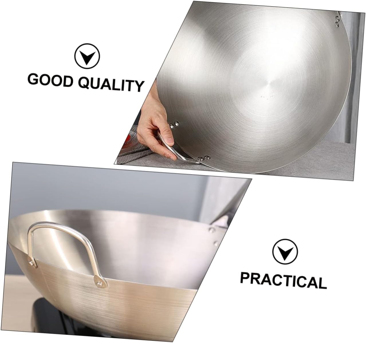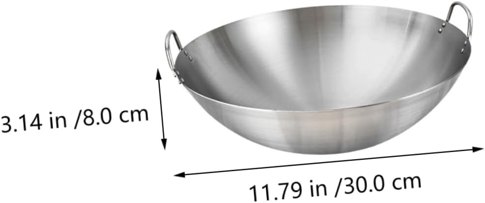 Description Use on any type of stovetop including induction and in the oven.Double grip handles are stainless steel riveted handles that stay cool on the stove top and provide grip. Features- Material: Stainless steel- Size: About 11.79X11.79X3.14inch/ 30.00X30.00X8.00cm- Color: Silver. Package Including 1 x wok