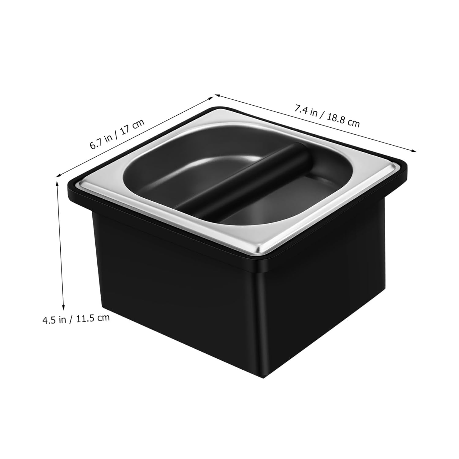 Package Include 1 x coffee knock box Characteristics -Convenient cleaning: The detachable design the process of cleaning out coffee grounds, helping you maintain a clean and efficient coffee-making environment ground coffee containers -Ample storage: With a large capacity, this coffee knock box allows it to accommodate accumulated coffee grounds during your coffee-making routines coffee grounds container disposal -Size:18.80X17.00X11.50cm/7.39X6.68X4.52in espresso machine knock boxes -Material:Stainless steel coffee trash bin -Rugged construction: Crafted from stainless steel, this coffee knock holder offers high resistance to wear and tear, so it withstands daily use coffee grounds container -Clear workspace: This coffee box provides a convenient dispose of your used coffee grounds, preventing mess and keeping your workspace clean coffee grind dump -Nonslip and noise-reduction: Our coffee grounds box features a nonslip base that keeps it securely in place during use and also reduces noise coffee accessories -Color: knock slag bucketGoods Descriptionespresso dump bin The nonslip base provides stability during use, preventing spills and accidents.coffee grounds holder Ideal for daily use, it helps maintain a clean and organized coffee station.coffee grounds bucket Its sleek design complements any kitchen or cafe.coffee knock slag bucket This coffee grounds holder is crafted from stainless steel, providing a sturdy and long-lasting for disposing of coffee grounds