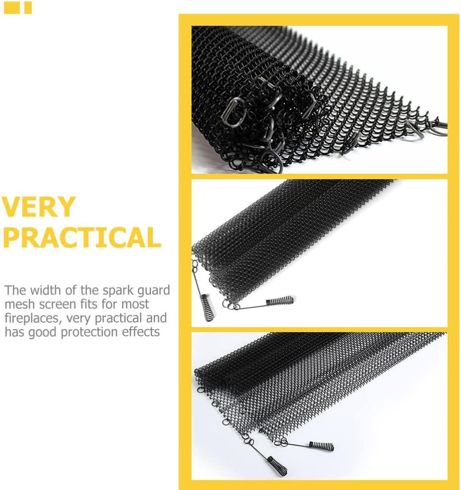 Features-Color:Black.-Material:Iron.-Size: about 61.00X48.30X0.50cm/23.97X18.98X0.20in.Package Including2 × fireplace mesh screen curtains.2 × handles.