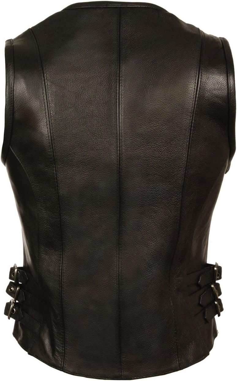 This is a beautiful leather vest LV1911 with fitted front zipper and no collar. This style complements any biker theme be it the classic look or the sporty look on the racing bikes. Made with soft feel 1.1mm Cowhide Leather.