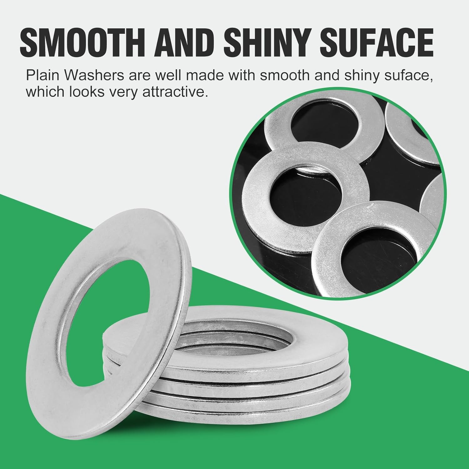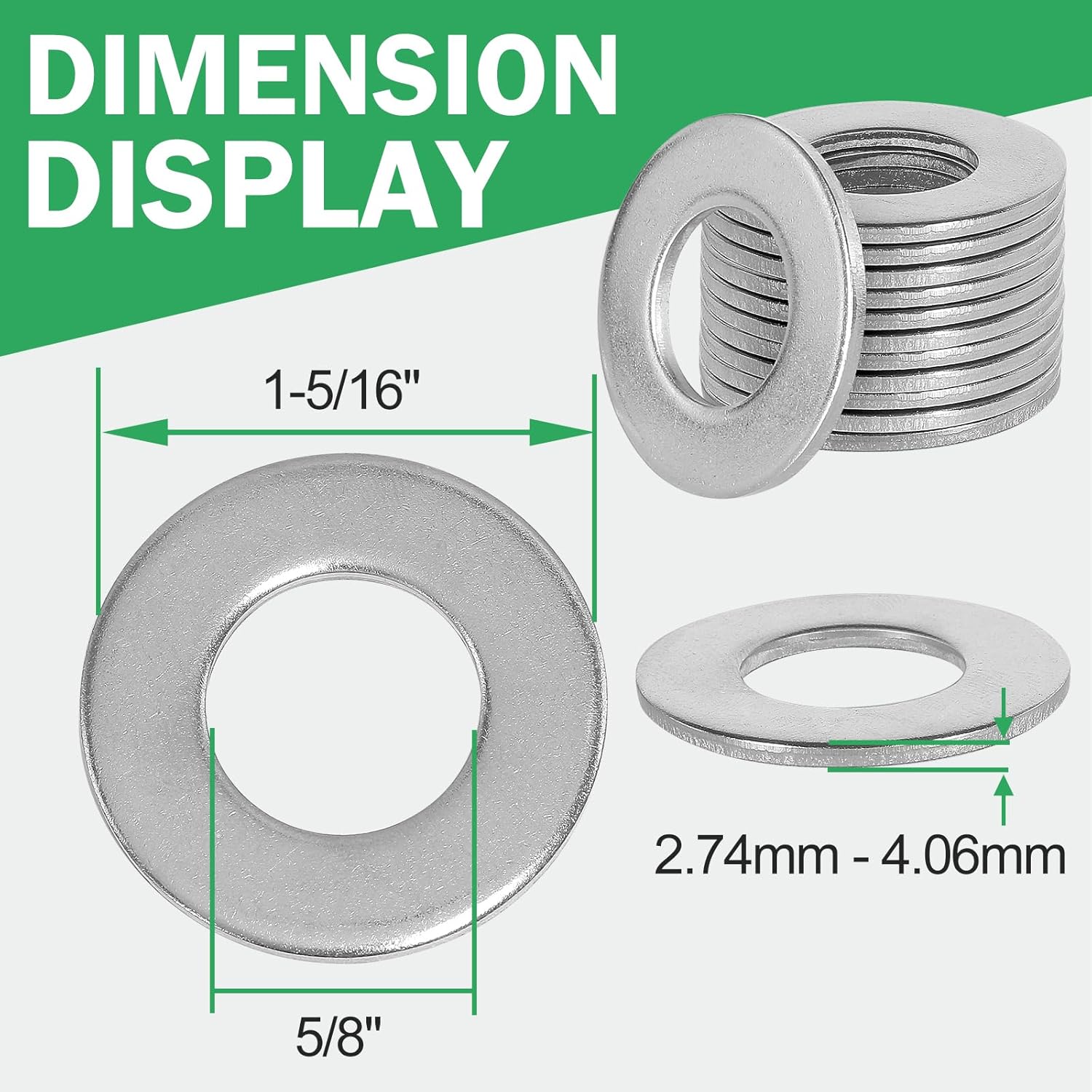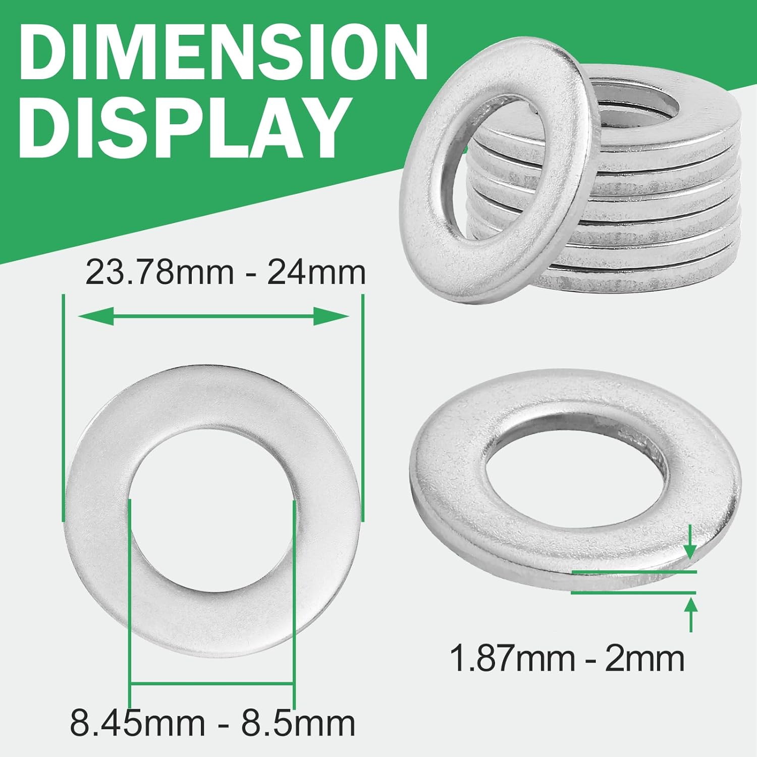 Durable High-Performance Metal Flat Washers, Rust-Resistant with Precision Manufacturing - Perfect for Home and Industrial Use Specification: Color: Silver Material: 304 Stainless Steel ID: 13.15mm - 13.22mm OD: 23.5mm - 24mm Thickness: 2.35mm - 2.5mm Package Included: 10 x M12 flat washers Warm Tips: 1.Small objects, please keep away from children 2.As the size is measured by hand, please allow 1-2mm difference between the actual size and the hand measured size. The pictures of the product are as close to the real thing as possible, but the colors are slightly different due to equipment, lighting and display.