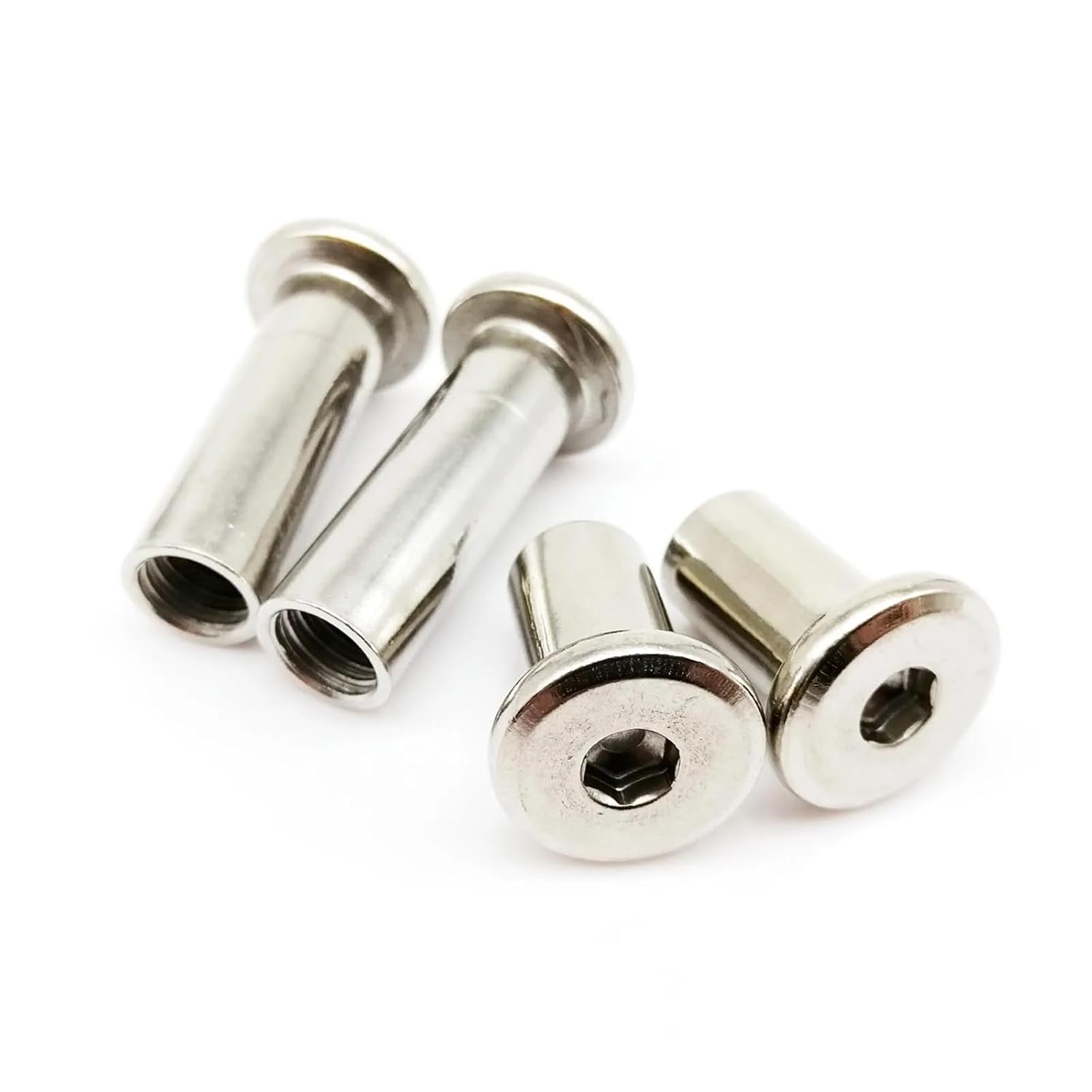 Allen NutsMaterial:304(A2-70) stainless steelSize =d(inside thread diameter)xL(sleeve length)Metric thread diameter:M3 (3mm) / M4 (4mm)/ M5 (5mm) / M6 (6mm) / M8(8mm) / M10 (M10)Metric thread pitch:0.5mm(M3) / 0.7mm(M4) / 0.8mm(M5) / 1mm(M6) / 1.25mm(M8) / 1.5mm (M10)Type : Rivet Nuts