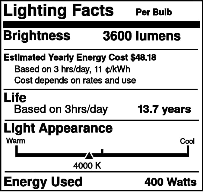 Industrial Performance M400U/ED28 - 400 Watt - 3600 Lumens - 4000K Color Temperature - Mongul E39 Base - Clear Glass - Metal Halide Light Bulb