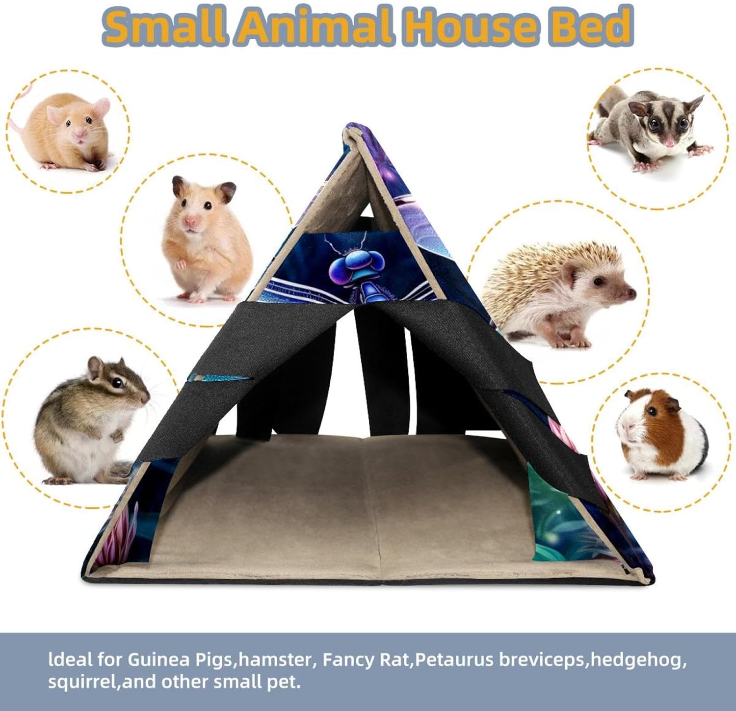 This "Little Hamster Home" is a series suitable for small pets such as hamsters, guinea pigs, rabbits, ferrets, mice, hedgehogs, and chinchillas. It is made of high-quality short velvet fabric and provides a private, warm, and comfortable hiding place, allowing your cute little animals to feel safe. Your baby can play, rest, hide, sleep, or engage in other activities in this safe haven, while also being a warm home. The size of 'Little Hamster House' is 10.2 inches long, 12 inches wide, and 8.5 inches high. The bottom is a foldable PP board, so when not in use, the hamster nest can be folded up without taking up space. By covering it with a layer of blankets, this cabin can become a comfortable hiding place. This small animal bed is made of high-quality soft short velvet fabric, with a sturdy structure that remains stable on the ground and will not collapse on its own. The ultra soft fabric makes your baby feel comfortable and warm in their own cabin. Plush curtains provide a private, warm, and comfortable resting place for your pets, allowing them to feel secure. Specially designed for guinea pigs, hedgehogs, golden bears, sugar kangaroos, hamsters, squirrels, chinchillas, small rabbits, flying dragons, and other small animals. When accidents cannot be avoided, there is no need to worry! This guinea pig bed can be hand washed and machine washed, suitable for air drying.