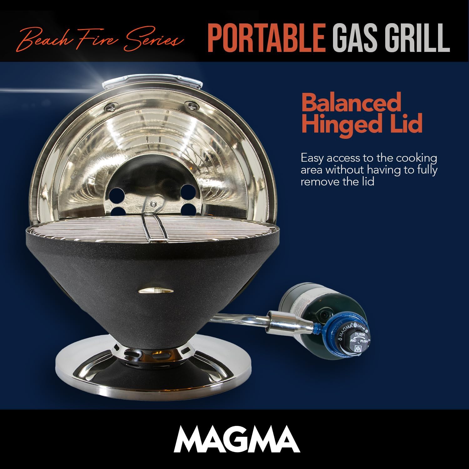 Ignite your outdoor culinary adventures with the Magma Beach Fire Gas Grill, now available in a spectrum of LIMITED EDITION vibrant COLORS! This portable grilling marvel, crafted from stainless steel with a resilient ceramic coating, is the perfect blend of style and substance. Experience unparalleled durability and resistance to rust, corrosion, and wear, ensuring your grill remains a centerpiece of your outdoor experiences for years to come. The thoughtfully designed hinged lid allows for effortless monitoring and precise heat control, sealing in those delectable flavors. Whether you're picnicking, camping, or simply enjoying the open air, the Beach Fire Gas Grill transforms any location into a gourmet grilling destination. This compact propane grill comes ready to use, providing a reliable and stylish solution for all your portable gas grilling needs.
