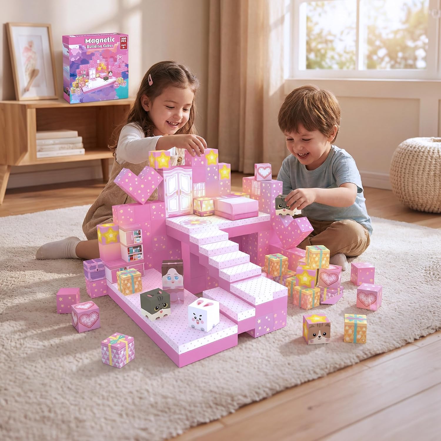 "The MILENTII Magnetic Building Cubes 200 PCS Set is designed to provide engaging, hands-on play for kids who enjoy building, creating, and imaginative exploration. Based on the included instruction manual, this set features 200 magnetic cubes in various styles, allowing children to construct houses, rooms, and creative scenes with ease. Each cube is designed with built-in magnets that help pieces connect smoothly during building. This magnetic connection allows kids to stack and arrange cubes securely while experimenting with different layouts. The intuitive design makes the building process accessible for young children while still offering enough variety to support more detailed creations. Some cubes in the set are designed with a light-up effect that adds visual appeal to finished builds. These illuminated-style blocks help enhance scene building and imaginative play without changing the simple, hands-on construction experience kids enjoy. Recommended for ages 3 and up, the cube size is suitable for small hands and easy handling. Children can build independently or play together with friends and family, encouraging shared creativity and interactive play. The variety of cube designs included in the set supports imaginative storytelling, role play, and scene-based building activities. The compact cube size allows for flexible designs and efficient use of space, making it easy to build detailed structures without overwhelming the play area. From simple builds to more complex scenes, this magnetic cube set adapts to different play styles and skill levels. Designed for creative play rather than screen time, the MILENTII magnetic building cubes offer an engaging way for kids to explore construction, imagination, and hands-on learning through play.