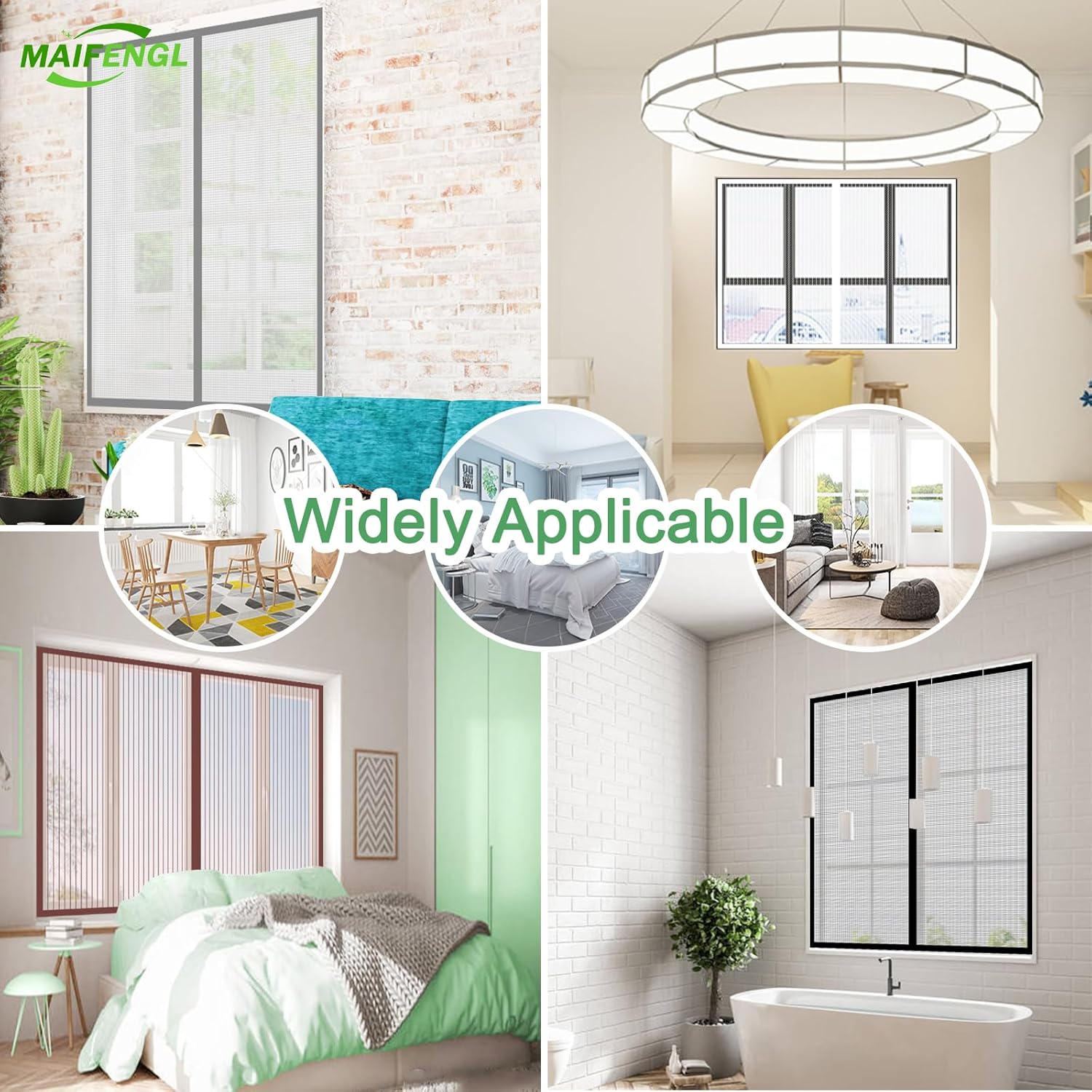 ▶Magnetic Screen Window☞ Strong Magnets - Built-in strong magnetic strips, more rapid closure.☞ Keep Fresh Air In - Fine mesh and polyester fabric, it is the best choice for summer.☞ Hands Free - Automatic closing allows you to free your hands.☞ Wide Range of Applications - For example, balcony door, bedroom, kitchen, children's room, living room etc.▶Installation Method1.First clean the window frame and dry completely.2.Attach the included tape to the window frame without removing the white tape.3.Remove the white tape from the top and stick the curtain to the window first.4.Then slowly press the tape on the frame.5.Use pressing tool for a better hold.6.Check the mosquito net to see if it can be opened and closed normally.NOTE: Make sure the center point is higher than the sides▶Package Contents1 x Magnetic Screen Window1 x Adhesive Tape