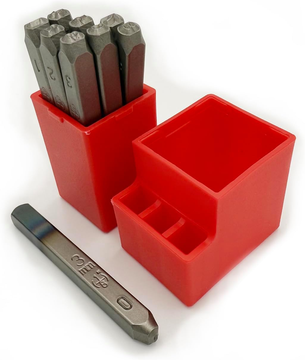 • Complete 36-Piece Set with Alignment Tools Includes 36 stamps (A-Z, 0-9, "&"), built-in alignment tools, a durable storage box