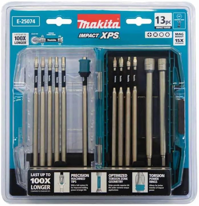 Discover the MAKITA IMP-XPS 150mm Screwdriver Bit Set, a 13-piece collection designed for precision and durability. With an impressive 150mm bit length, these tools excel in confined spaces and hard-to-reach areas, making them perfect for electrical equipment installations. The set features precision-machined tips that provide superior holding power through full contact fit. The bits incorporate innovative torsion power rings and optimised torsion zone geometry, ensuring exceptional performance under high-torque applications. These XPS bits boast remarkable longevity, while the Mag Boost technology delivers enhanced magnetic holding strength. The set comes organised in a clear-top plastic case, allowing quick identification and access to the right bit for your task. With dimensions of 260mm length, 250mm width, and 50mm height, this compact yet comprehensive set weighs just 0.79kg.
