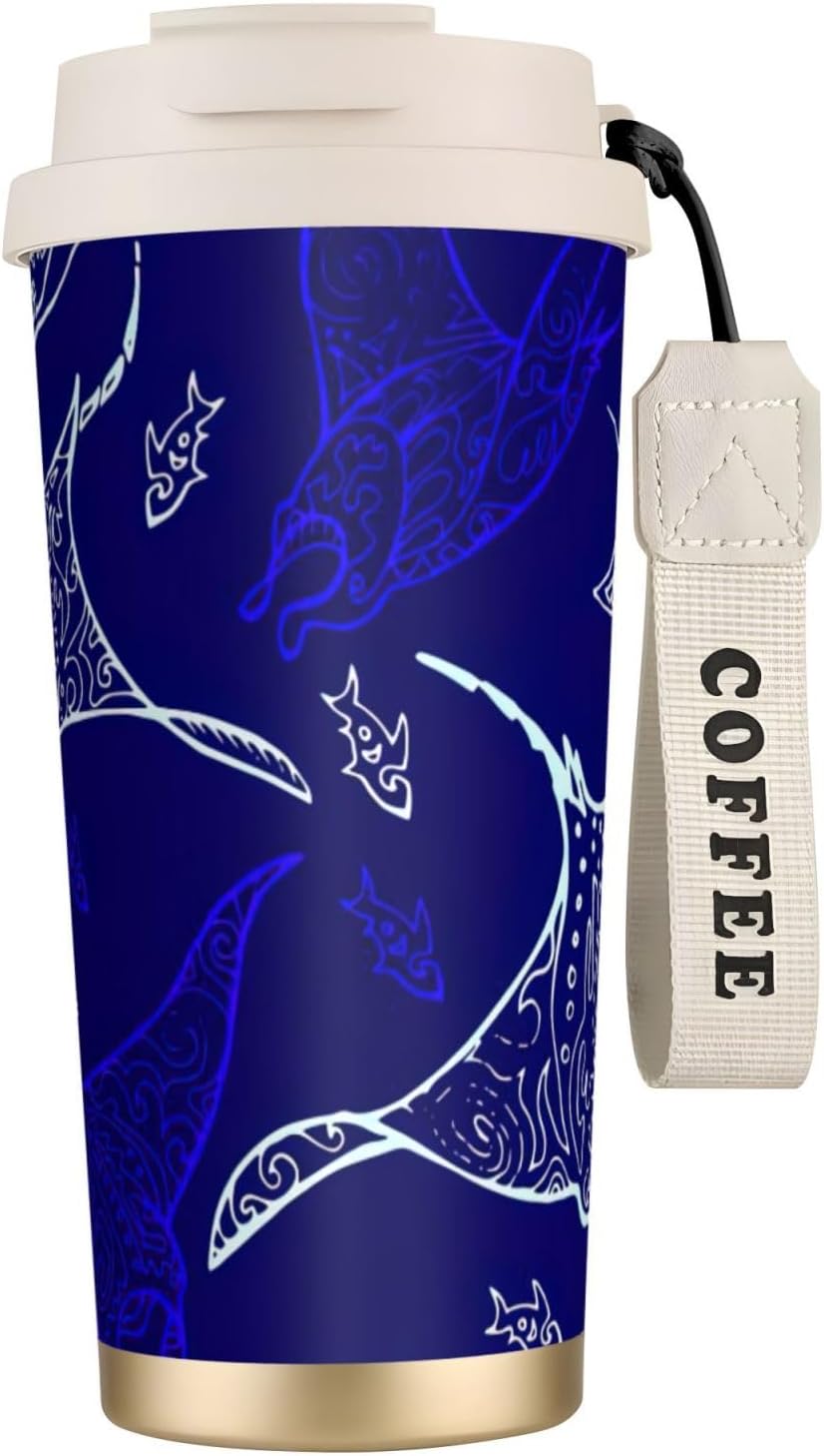 This Manta Ray and Fish Print travel Coffee Mug supports three drinking modes: the direct drink spout for quick drinks during commutes, the straw port for iced coffee and other spill prone beverages, and the open top design that replicates the traditional coffee cup experience. BPA Free 316 Stainless Steel, Safe and Durable Inner liner made of food grade 316 stainless steel, non toxic, odorless, BPA free, safe for long term use.