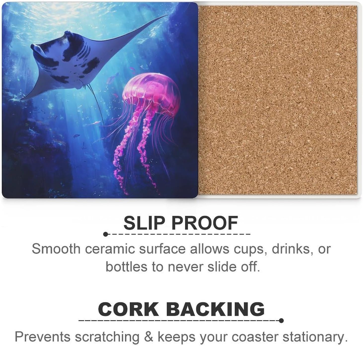 coasters,coasters set of 4,coasters set of 6,cute coasters with Funny Pattern Printed Ceramic Coasters with Cork Base Cup Holder Absorbent for Drinks Coasters Square Tabletop Protection Mat Decorative Cute Coffee Cup Beverage Coasters