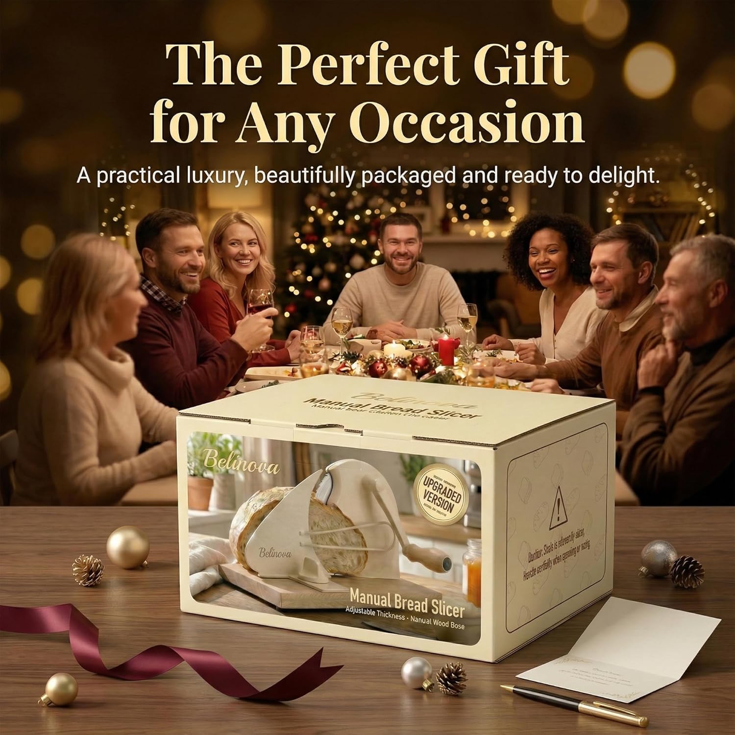Manual Bread Slicer for Homemade Sourdough & Bagels, Adjustable Thickness Hand Crank Bread Cutter with Anti-Jam Guide Plate, Solid Wood Base & Rust-Proof Stainless Steel Blade