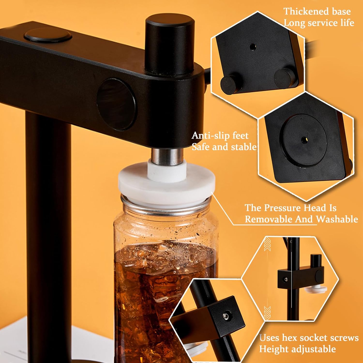 This commercial manual can sealer features a slotted positioning design and comes with a silicone pad to firmly hold the bottles in place and prevent them from falling out. Features adjustable height markings, eliminating the need to change holders to fit different sizes of cans. The aluminum alloy body is robust, durable and portable. A slight pressure on the handle preserves freshness and prevents leaks. Its purely mechanical design requires no electrical connection, making it ideal for various environments, such as kitchens and stalls. It is an efficient choice for families and small businesses. Product Features: Material: Aluminum Alloy Color: Black/Green/Pink/Yellow/Purple Installation method: Table top Applicable Materials: Aluminum Cans/PET Cans Sealing capacity: 250/330/400/500/700ml Seal size: 55mm Net weight: 2.8 kg Product List: Manual Pressure Sealer × 1 PET bottles × 100(500ml straight bottle optional) Instruction manual × 1 Note: 1. Due to different lighting and shooting angles, the actual color may vary slightly. Please refer to the actual product. 2. If you have any problems using the product, please contact us immediately.