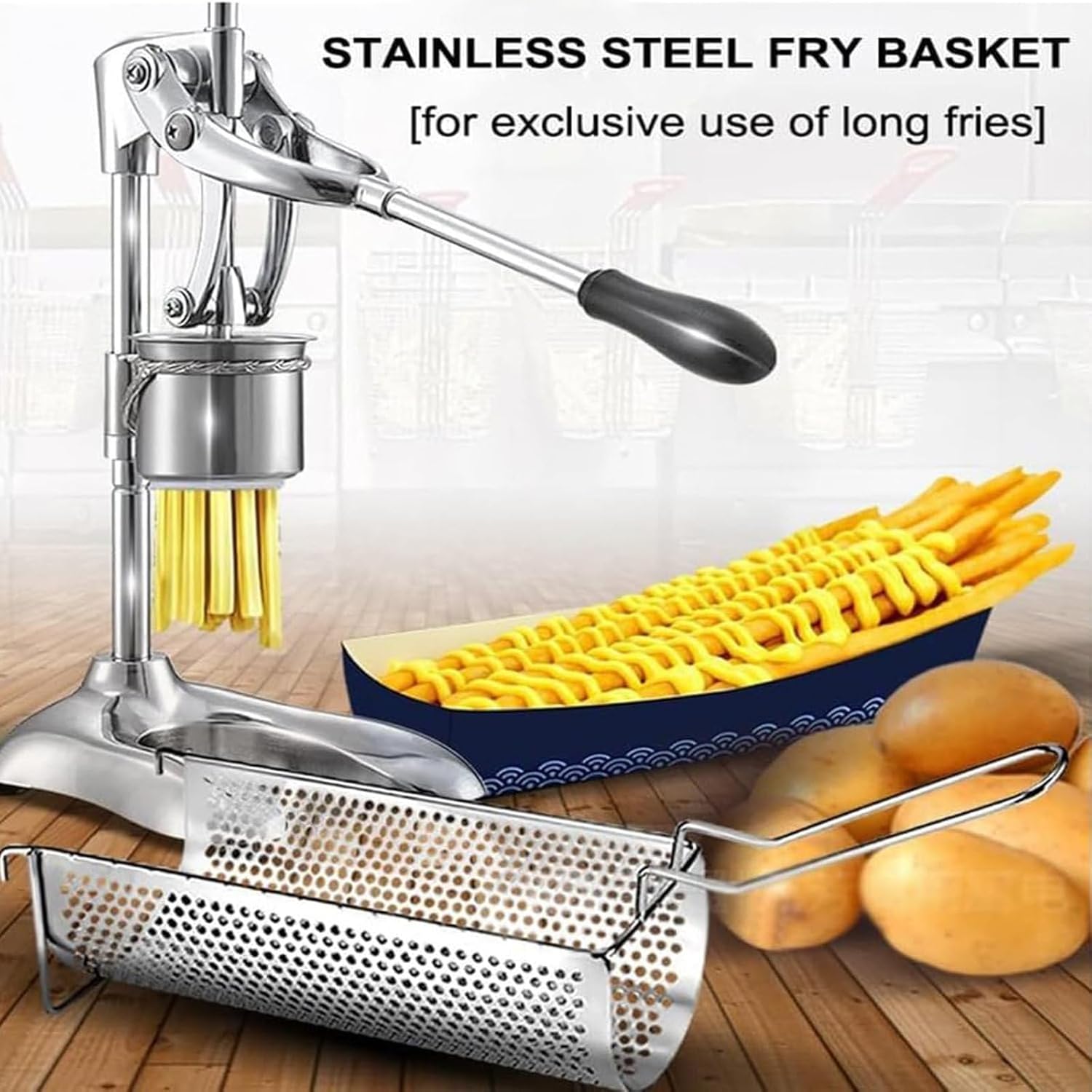 Stable and labor-saving mechanical design, U-shaped weighted base prevents tipping, and the long frying basket ensures safe and efficient cooking!Features:1. It can easily make 30-centimeter-long French fries, up to 12 at a time, adding a distinctive flavor and variety to your dishes.2. Lightweight, sturdy components with no dead corners ensure easy assembly and cleaning, complemented by a 360° rotating container for flexible use.3. With a stable, effort-saving mechanical design and a U-shaped weighted base to prevent tipping, it ensures safe, smooth pressing and works with extended frying baskets.Specifications:Product Name: Long French Fries MakerNumber of extrusion holes: 12Type: ManualCapacity: Produce up to 12 long fries simultaneouslyMaterial: Stainless steelMachine Product Size: 20x25x46cm/7.87x9.84x18.11inBasket Product Size: 52x11x10cm/20.47x4.33x3.93inPackage Size: 53x29x37cm/20.87x11.42x14.57inProduct Weight: 5kg/11.02IbsPackage Weight: 7kg/15.43IbsIdeal for hotels, food trucks, restaurants, cafes and street food carts.Package Included:1 x Potato strip maker1 x Frying basketNote: 1. Color of this item may vary slightly from the pictures due to differences in light and screen configurations.2. Please allow slight size differences due to different manual measurements.3. For any inquiries, do not hesitate to contact us, and we will respond within 24 hours.