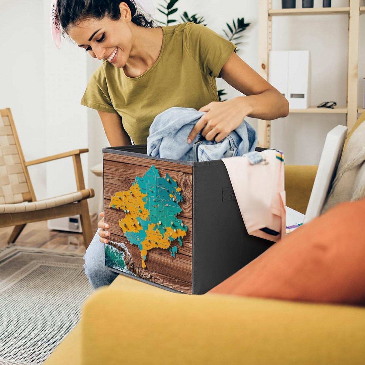 This foldable storage box is made of high-quality oxford cloth fabric with a sturdy structure, durable and will not easily scratch items. There are a variety of patterns to choose from, beautiful and lightweight, keeping your home items tidy and organized.Save on space when not in use and fold flat for easy storage, assembles in seconds. Features sturdy handles for easy transport lightweight and durable. Great for toys, books, linens, clothes, shoes, holiday ornaments, and more in the home or office.Can be used to bedroom organizing basket, laundry storage box, toy organizers box, bathroom towel cube storage bin, toilet storage container, book magazine organizer, holiday ornaments storage cubes, living room storage, and many other uses.