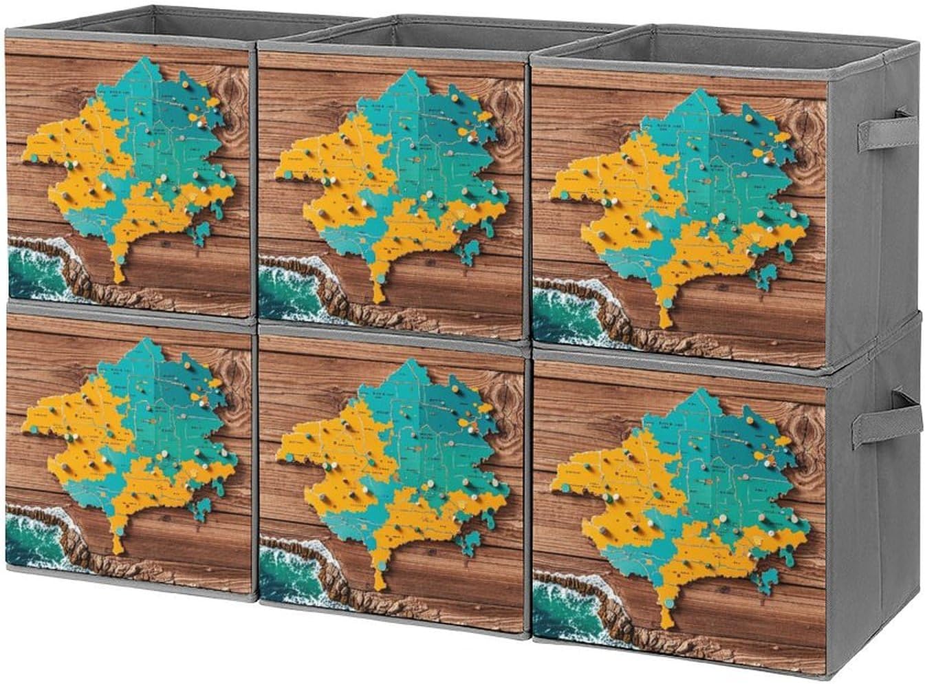 Map on Wooden Background Foldable Storage Box with Handles, Durable Oxford Storage Cubes, 2PCS Collapsible Closet Organizer for Home, Shelf, Office, Travel