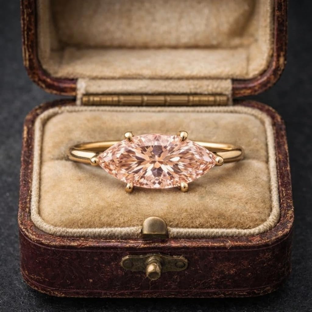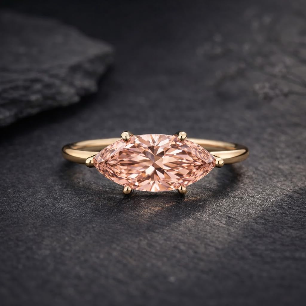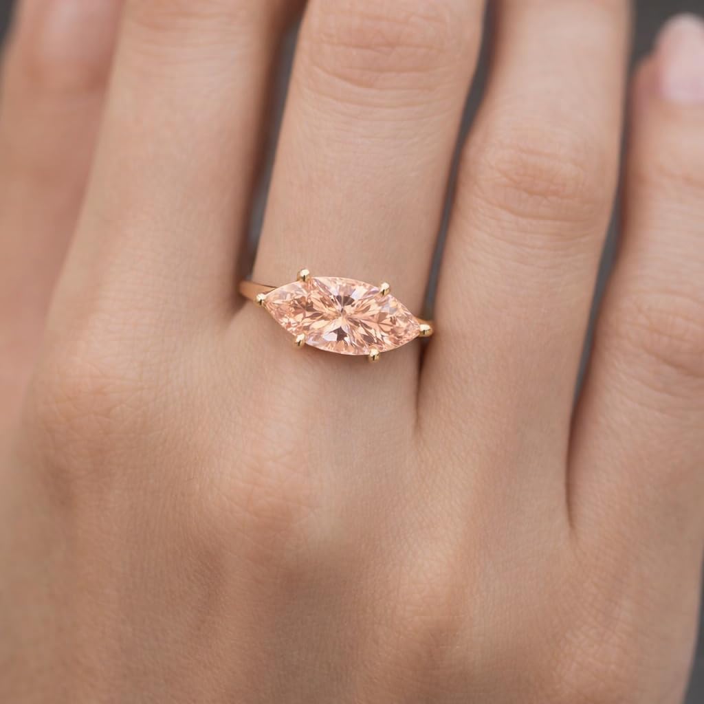 Celebrate love with this elegant marquise cut peach morganite engagement ring. Designed with a graceful elongated marquise gemstone, this ring creates a stunning sparkle while offering a sophisticated and timeless look. The delicate solitaire setting highlights the soft peach hue of the gemstone, beautifully complemented by the warm tone of yellow gold. This minimalist yet luxurious design makes it perfect for modern brides who appreciate classic elegance. Morganite is known as the stone of love and compassion, symbolizing romance, harmony, and emotional connection. Because of its soft blush color and brilliant sparkle, it has become a popular alternative engagement ring gemstone. Whether chosen as an engagement ring, promise ring, anniversary gift, or fine jewelry piece, this marquise peach morganite ring is designed to bring elegance and meaning to every special moment. Its refined craftsmanship ensures comfort, durability, and timeless beauty, making it a jewelry piece that can be treasured for years to come.