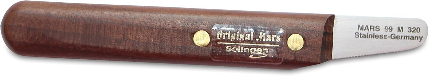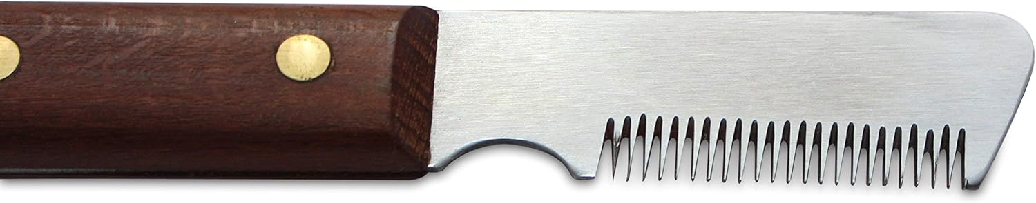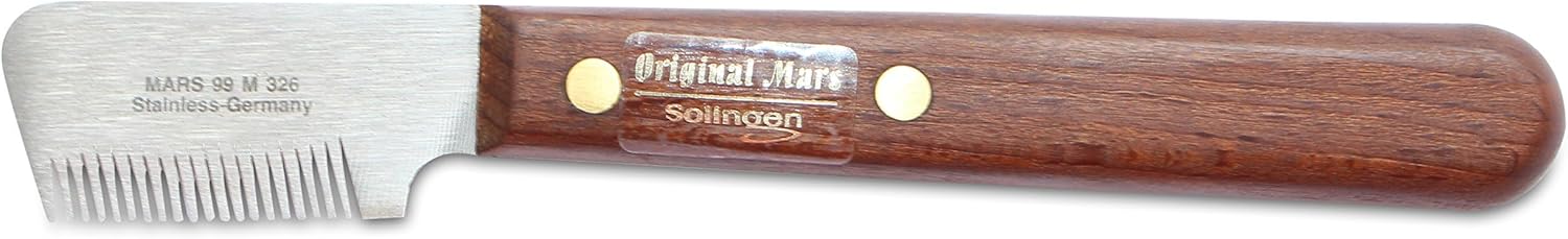 This Right-handed-Stripping-knife consists of a high-grade steel blade, rust free and hardened. The medium texture teeth are designed to be blunt . A fine wooden handle made from Bubinga red wood, naturally FSC (sustainable forestry) certified, fits optimally for the high-quality appearance of this stripping knife. This stripping knife is designed for the removal of undercoat. High-grade steel blade, rust free, medium toothing, fine wooden handle. Made in Germany.