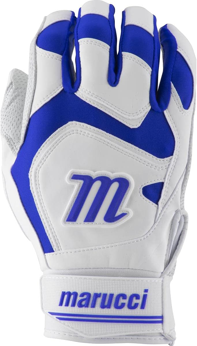 Marucci 2020 Signature Batting Glove Digitally embossed, perforated Cabretta sheepskin palm provides maximum grip and durability Finger break contours decrease bunching for a clean, smooth feel Rubberized synthetic thumb layer prevents friction in a high-wear area Two-way stretch Lycra inserts for superior mobility Neoprene cuff for support and comfort