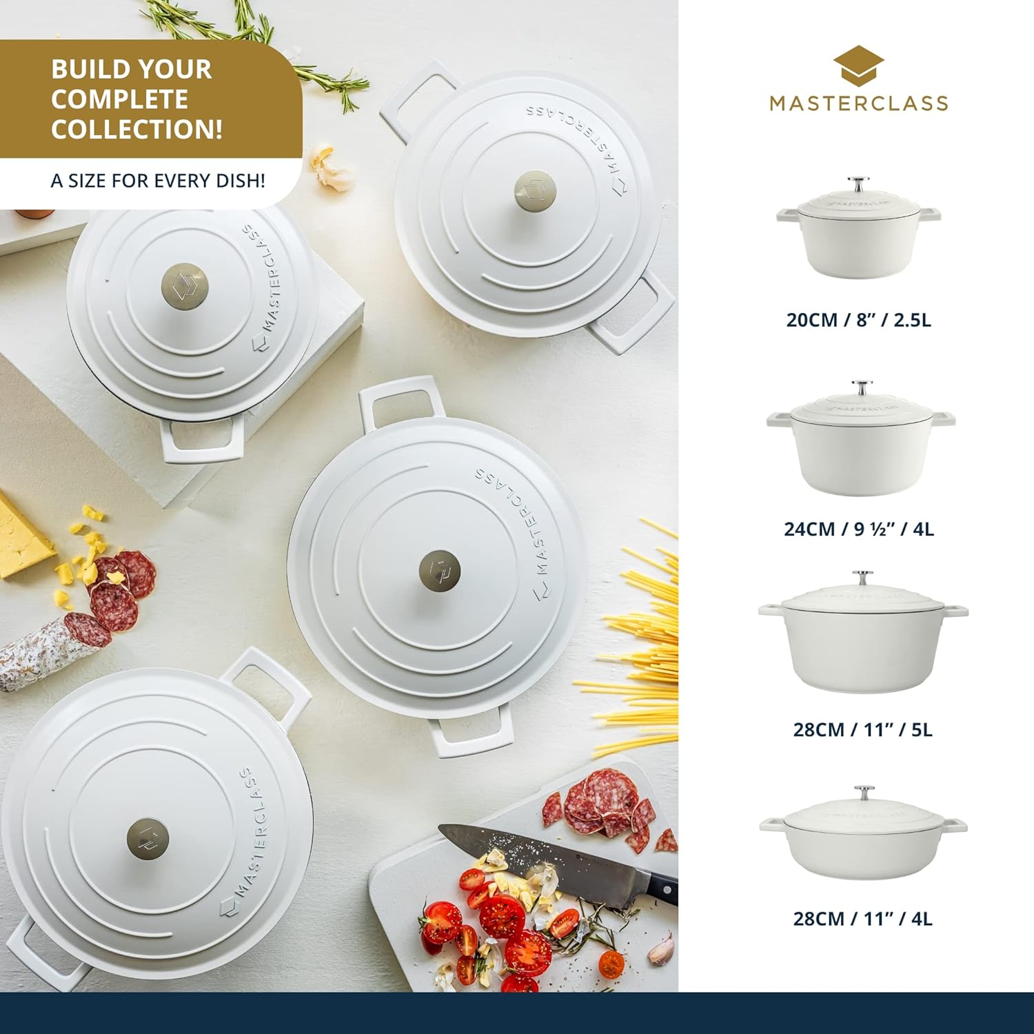 MasterClass Non-Stick Cast Aluminium Induction-Safe Casserole Pan (5 L) Revolutionise the way you cook: It's not often you get to enjoy the best of all worlds. But with this innovative five-litre casserole dish from MasterClass, you can. This sturdy dish is made of high-quality aluminium, which is lightweight and a strong heat conductor. And it's finished with a double scratch-proof, non-stick layer. That’s the perfect recipe for a long-term kitchen companion: an extra-tough pot that cooks stews evenly and thoroughly. It's ideal for cooking hearty beef stews or spicy chicken casseroles on the hob (it’s induction safe). You can put it in your oven too - making it great for slow-cooked stews, curries and tagines. Capacity: 5 litres (1 gallon) Dimensions (with handles): 37 x 28 cm (14½ x 11 inches) Depth: 22 cm (8½ inches) Oven safe to 2°C (392°F) Suitable for all hobs (including induction) Dishwasher safe