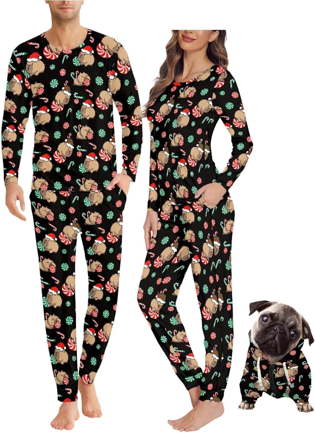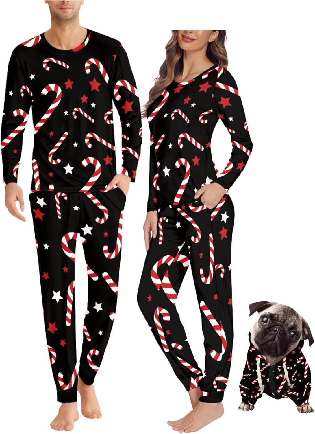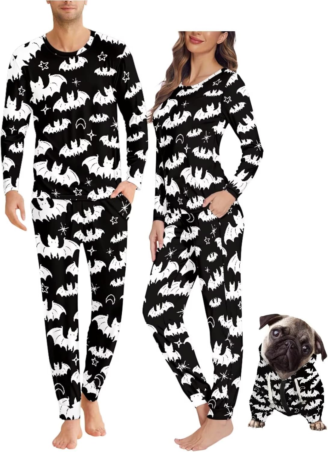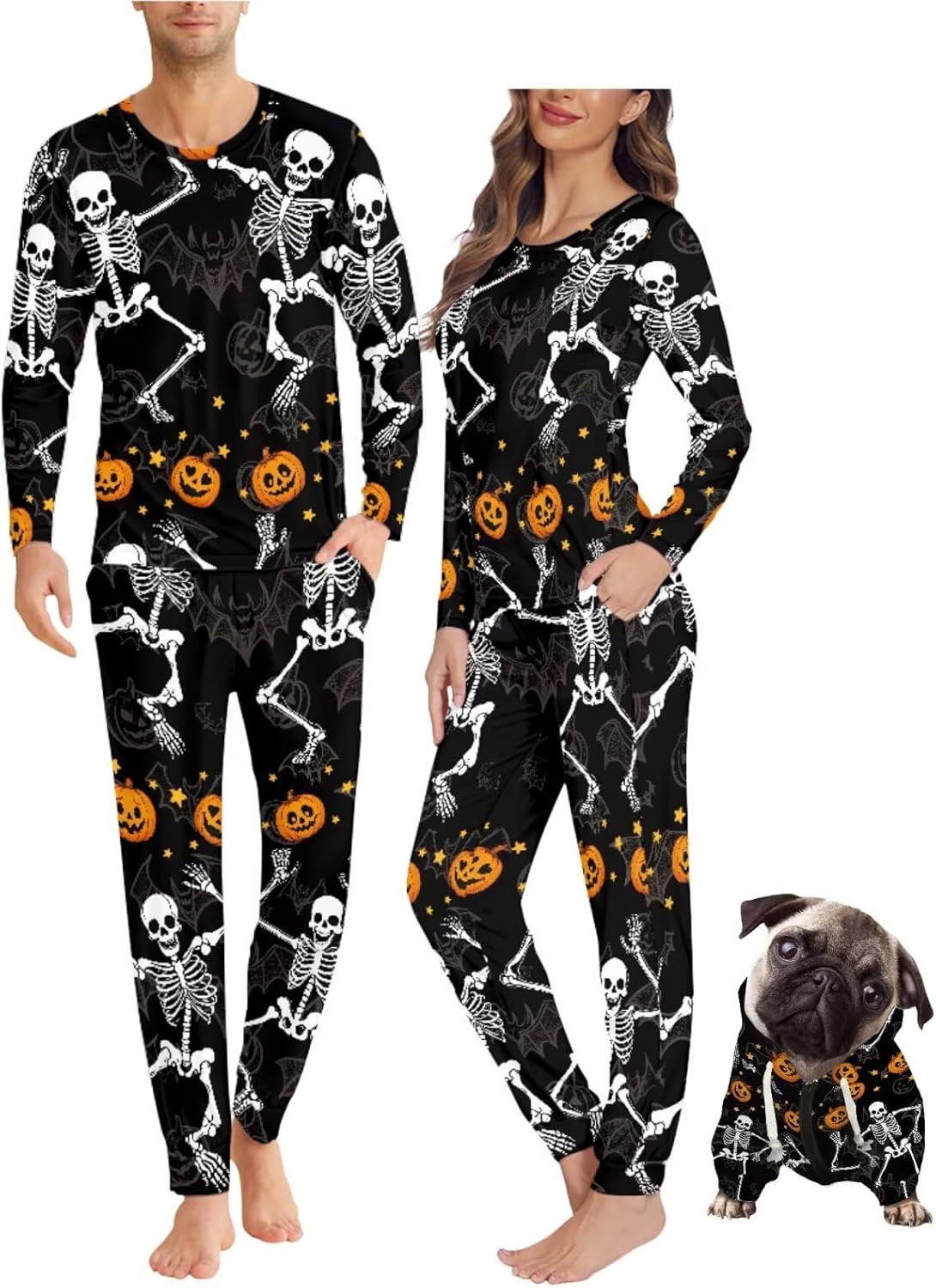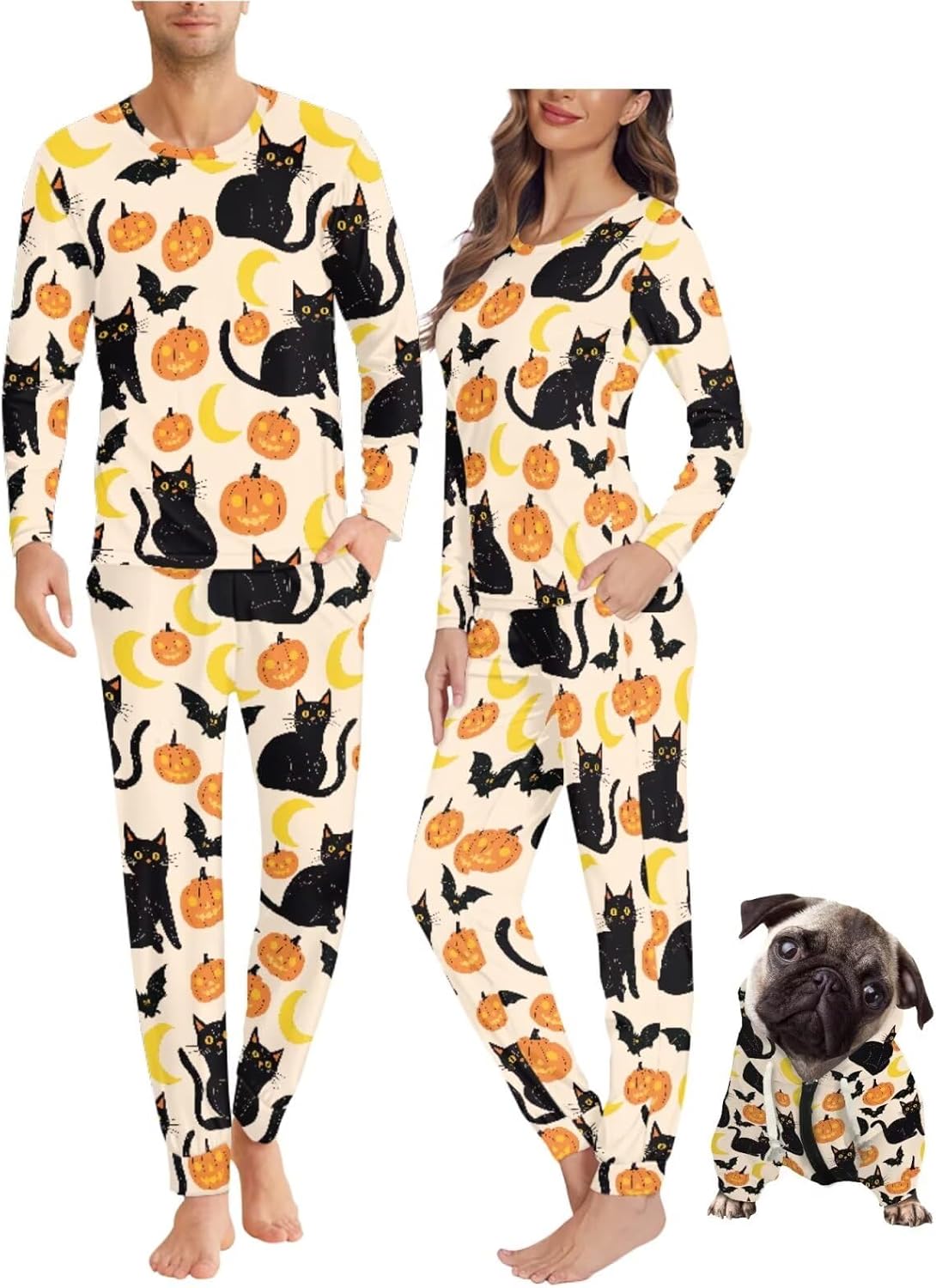 Matching Pajamas and Dog Hoodies Thoughtful Design for Couples & Pets Functional Pockets: Keep Phones, Treats, Or Small Supplies Close. Comfy Elastic Waistband: A Relaxed Fit for Maximum Coziness. Dog Sweater (Hoodie Style): Comfortable Fit Cozy, Stylish & Practical: Soft, Breathable Matching Pajamas Keep You Warm on Crisp Autumn Nights While Allowing Full Freedom of Movement. The Stretchy Fabric Ensures All-Night Comfort, Whether You're Posing for Fall Family Photos, Trick-or-Treating, Or Enjoying a Lazy Weekend at Home. Perfect for Most Occasion! From Halloween and Thanksgiving Gatherings to Festive Holiday Parties or Lounging, These Matching Pjs Add a Playful Touch to Any Moment Gifts That Warms the Heart Ideal for Couples, Pet Lovers, Or Newlyweds! The Adorable Matching Design Makes It a Memorable Gift for Birthdays, Anniversaries, Christmas Share the Love and the Cuteness with Sleepwear Set Made for Making Memories.