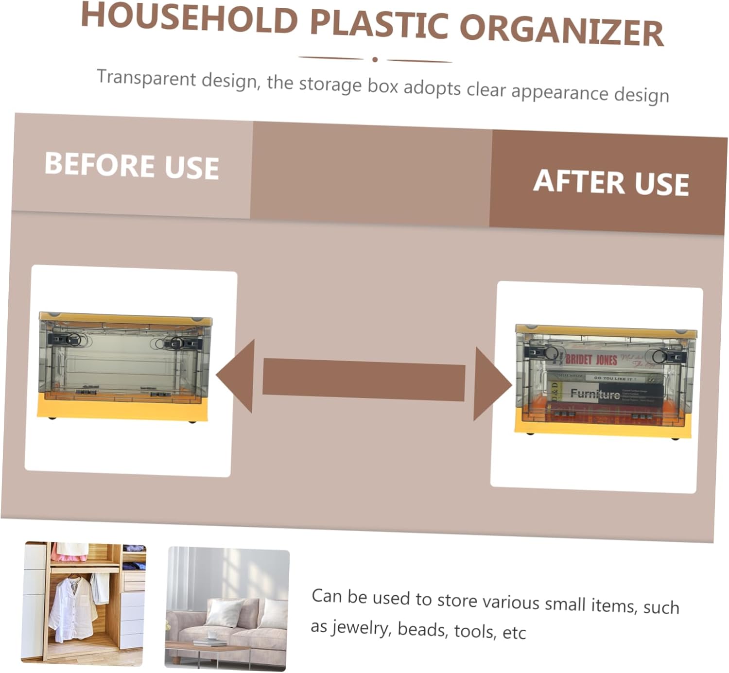 Package Include 1 Features -Material:PP plastic box with lid -Capacoty: 27L Home Sundries Storage Case -Color:Yellow large organizer box -Size:39.00X29.50X24.00cm/15.33X11.59X9.43in large plastic box for tools - Desktop storage case is easy to use and easy to clean, which brings great convenience to your life Tabletop Storage Rack. - Our desktop sundry organizer storage case is suitable for bedroom, living room, bathroom, kitchen and other spaces Sundries Storage Case. - The material is and , which is wear resistance and for the lasting time use large parts storage box. - The large capacity design can store cosmetics and many sundries. With a design, this storage box is easy to use, you can use it easily large storage box. - It help to keep your things neat and orderly, quickly and efficiently find what you need plastic storage case.Goods InformationMakeup Storage Rack search of a storage box that fits your need at home or office? Do you want to keep your desktop better organized? Then, this is a multi-functional storage container for you.Sundries Organizing Rack Also, can be taken to your workplace to satisfy your storage requirements.plastic storage containers You can store things inside it to make your space look tidier